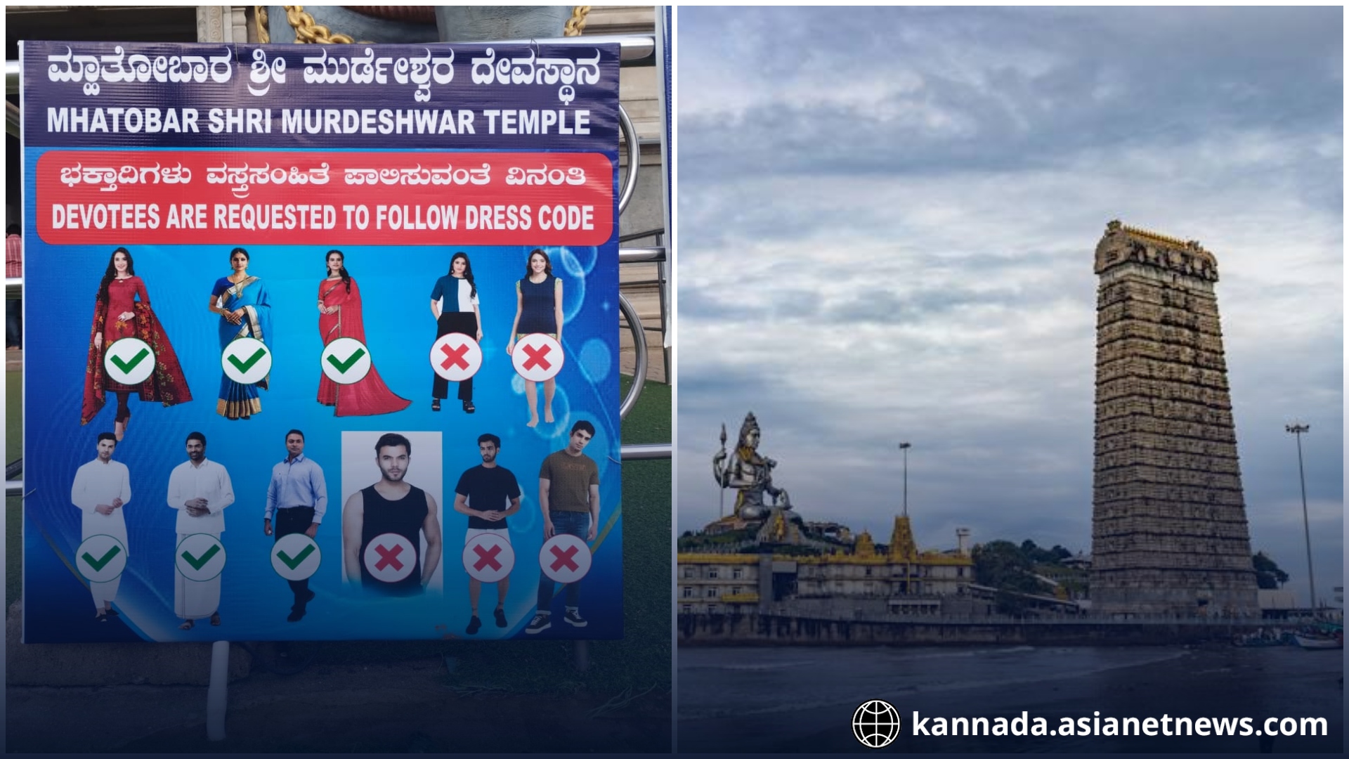 ಬೀಚ್‌ ಸಮೀಪದಲ್ಲಿ ನೆಲೆಗೊಂಡಿರುವ ಉತ್ತರ ಕನ್ನಡ ಜಿಲ್ಲೆಯ ಭಟ್ಕಳ ತಾಲೂಕಿನಲ್ಲಿ ಪ್ರಸಿದ್ಧ ಮುರುಡೇಶ್ವರ ಕ್ಷೇತ್ರದಲ್ಲಿ ಇನ್ನು ಮುಂದೆ ದೇವಾಲಯ ಪ್ರವೇಶಕ್ಕೆ ಕಡ್ಡಾಯ ವಸ್ತ್ರ ಸಂಹಿತೆ ಜಾರಿಯಾಗಲಿದೆ. ಈ ನಿರ್ಧಾರವನ್ನು ದೇವಸ್ಥಾನದ ಆಡಳಿತ ಮಂಡಳಿ ತೆಗೆದುಕೊಂಡಿದ್ದು, ದೇವಾಲಯದ ಪ್ರವೇಶದ ಬಳಿ ಸೂಚನಾ ಫಲಕವನ್ನು ಕೂಡಾ ಅಳವಡಿಸಲಾಗಿದೆ. ವಸ್ತ್ರ ಸಂಹಿತೆಯನ್ವಯ, ಪುರುಷರಿಗೆ ಪಂಚೆ ಅಥವಾ ಧೋತಿ ಧರಿಸುವುದು ಹಾಗೂ ಮಹಿಳೆಯರಿಗೆ ಸೀರೆ ಅಥವಾ ಚೂಡಿದಾರ ಧರಿಸುವುದು ಮಾತ್ರ ಅನುಮತಿಸಲಾಗಿದೆ. ಅಶಿಷ್ಟ, ಅಸಭ್ಯ ಅಥವಾ ಅಸಭ್ಯತೆಯ ಬಟ್ಟೆ ಧರಿಸಿ ದೇವಾಲಯ ಪ್ರವೇಶಿಸುವಂತಿಲ್ಲ.