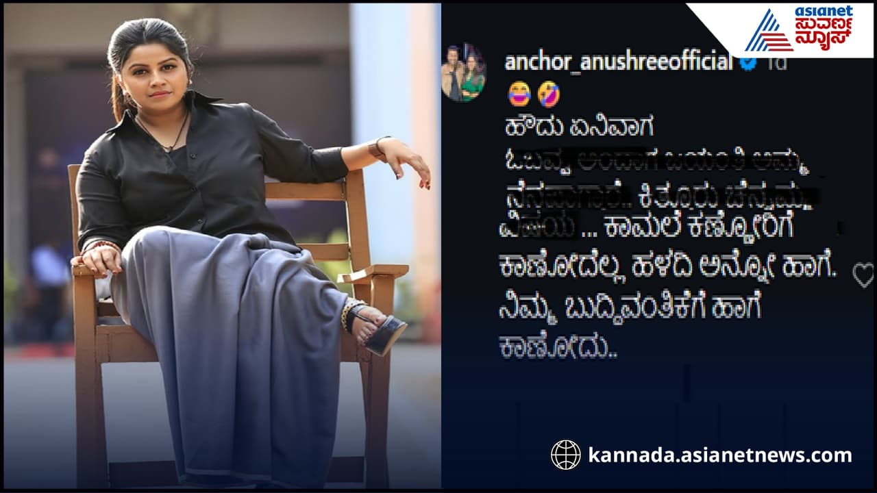 Anchor Anushree: ಟ್ರೋಲ್ ಮಾಡಿದ ಪೇಜ್’ಗೆ ಕಾಮೆಂಟ್ ಮಾಡಿ ಖಡಕ್ ಉತ್ತರ ಕೊಟ್ಟ ನಿರೂಪಕಿ ಅನುಶ್ರೀ | Anchor Anushrees Comment On Troll Page Video