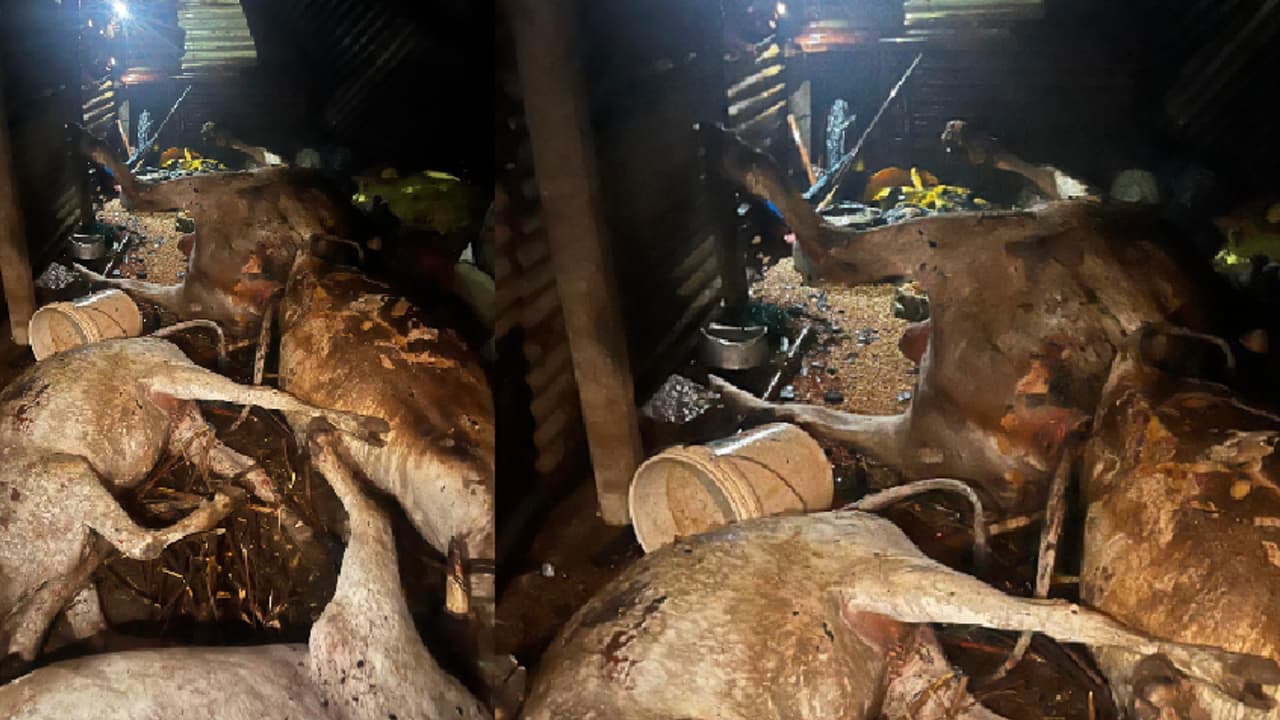 Koppal cattle shed fire incident ಕೊಪ್ಪಳ: ಕೊಟ್ಟಿಗೆಗೆ ಬೆಂಕಿ, 6 ಜಾನುವಾರುಗಳು ಸುಟ್ಟು ಕರಕಲು | Heartless Act In Karnataka Arson Attack On Cattle Shed Kills 2 Oxen 2 Cows Goat And Dog At Koppal