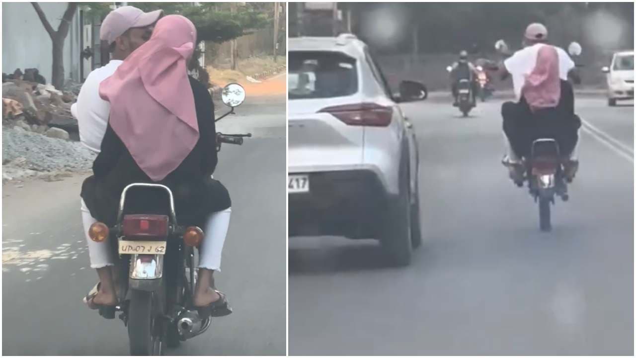 ಅಪಾಯಕಾರಿ ಬೆಂಗಳೂರು ವೀಲಿಂಗ್, ಮಾನ್ಯತಾ ಟೆಕ್ ಪಾರ್ಕ್ ಬಳಿ ಬುರ್ಕಾ ಧರಿಸಿದ ಯುವ ಜೋಡಿಯ ಅಪಾಯಕಾರಿ ಹುಚ್ಚಾಟ! | Wheeling Menace Escalates In Bengaluru Public Safety At Risk Near Manyata Tech Park