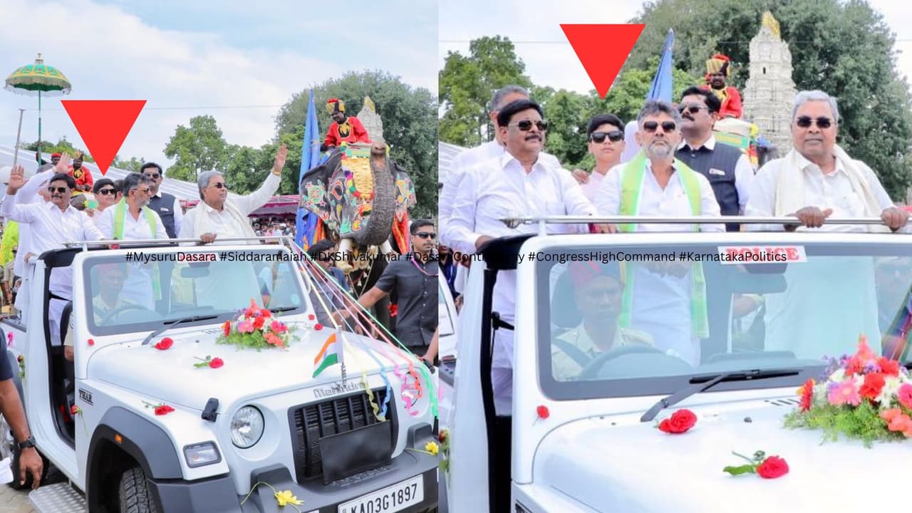 Mystery Boy in CM-DCM Dasara Parade Jeep Reaches Congress High Command ಮೈಸೂರು ದಸರಾ ಜಂಬೂ ಸವಾರಿ ವೇಳೆ ಸಿಎಂ ಹಾಗೂ ಡಿಸಿಎಂ ಜೊತೆ ತೆರೆದ ಜೀಪಿನಲ್ಲಿ ಕಾಣಿಸಿಕೊಂಡ ಬಾಲಕನೊಬ್ಬನಿಂದ ವಿವಾದ ಭುಗಿಲೆದ್ದಿದೆ.
