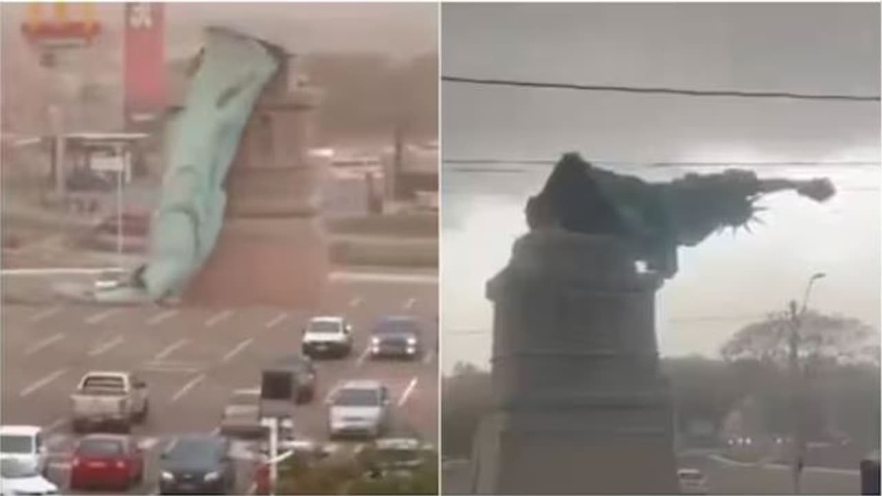 ಬ್ರೆಜಿಲ್ನಲ್ಲಿ ತೀವ್ರ ಚಂಡಮಾರುತದ ಅಬ್ಬರಕ್ಕೆ ಹವಾನ್ ಮೆಗಾಸ್ಟೋರ್ನ ಹೊರಗಿದ್ದ 24 ಮೀಟರ್ ಎತ್ತರದ ಸ್ವಾತಂತ್ರ್ಯ ಪ್ರತಿಮೆಯು ಕುಸಿದು ಬಿದ್ದಿದೆ. ಗಂಟೆಗೆ 90 ಕಿ.ಮೀ ವೇಗದ ಗಾಳಿಗೆ ಪ್ರತಿಮೆ ಉರುಳಿದರೂ, ಯಾವುದೇ ಪ್ರಾಣಹಾನಿ ಸಂಭವಿಸಿಲ್ಲ ಮತ್ತು ಈ ದೃಶ್ಯ ಸಿಸಿಟಿವಿಯಲ್ಲಿ ಸೆರೆಯಾಗಿದೆ.