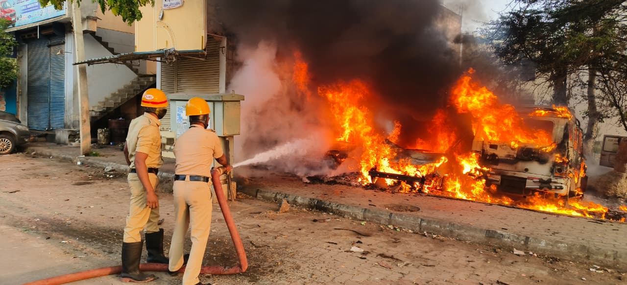 ದಾವಣಗೆರೆ ಮತ್ತು ಬಾಗಲಕೋಟೆ ಜಿಲ್ಲೆಗಳಲ್ಲಿ ಸಂಭವಿಸಿದ ಎರಡು ಪ್ರತ್ಯೇಕ ಅಗ್ನಿ ದುರಂತಗಳಲ್ಲಿ ಗ್ಯಾರೇಜ್ಗಳಲ್ಲಿದ್ದ ವಾಹನಗಳು ಸುಟ್ಟು ಕರಕಲಾಗಿವೆ. ದಾವಣಗೆರೆಯಲ್ಲಿ ಕಾರುಗಳು ಭಸ್ಮವಾದರೆ, ಇಳಕಲ್ನಲ್ಲಿ ಶಾರ್ಟ್ ಸರ್ಕ್ಯೂಟ್ನಿಂದಾಗಿ ಬೈಕ್ಗಳು ಬೆಂಕಿಗಾಹುತಿಯಾಗಿವೆ.