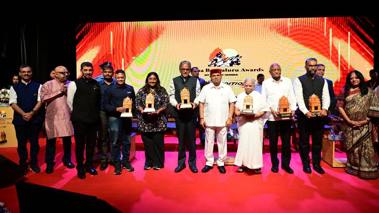 ಬೆಂಗಳೂರಿನ ಕೋರಮಂಗಲದಲ್ಲಿ ನಡೆದ ‘ನಮ್ಮ ಬೆಂಗಳೂರು ಪ್ರಶಸ್ತಿ’ಯ 14ನೇ ಆವೃತ್ತಿಯಲ್ಲಿ ನಗರದ ಅಭಿವೃದ್ಧಿಗೆ ಕೊಡುಗೆ ನೀಡಿದ ಐವರು ಗಣ್ಯರಿಗೆ ಪ್ರಶಸ್ತಿ ಪ್ರದಾನ. ರಾಜ್ಯಪಾಲ ಥಾವರ್ ಚಂದ್ ಗೆಹ್ಲೋಟ್ ಅವರಿಂದ ಪ್ರಶಸ್ತಿ ಪ್ರದಾನ, ಹಲವು ಗಣ್ಯರು ಉಪಸ್ಥಿತಿ.