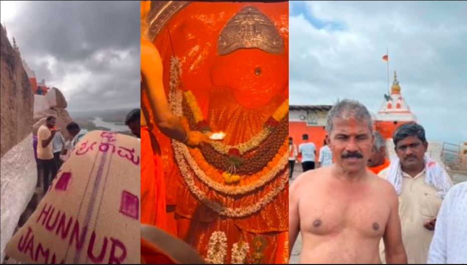 61 ವರ್ಷ ಪ್ರಾಯದ ಹನುಮ ಭಕ್ತರೊಬ್ಬರು ಜೋಳ ತುಂಬಿದ್ದ 102 ಕೇಜಿ ತೂಕದ ಮೂಟೆಯನ್ನು ಹೊತ್ತು ಅಂಜನಾದ್ರಿ ಬೆಟ್ಟವನ್ನು ಏರಿದ್ದಾರೆ. ಬೆನ್ನ ಮೇಲೆಮೂಟೆ ಹೊತ್ತು ಅವರು ಅಂಜನಾದ್ರಿ ಬೆಟ್ಟದ 575 ಮೆಟ್ಟಿಲನ್ನು ಏರಿ ಹೋಗುತ್ತಿರುವ ವೀಡಿಯೋ ಈಗ ಸಾಮಾಜಿಕ ಜಾಲತಾಣದಲ್ಲಿ ಭಾರಿ ವೈರಲ್ ಆಗಿದೆ.