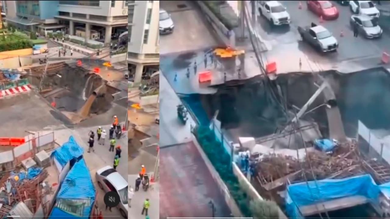 ಥೈಲ್ಯಾಂಡ್ ರಾಜಧಾನಿ ಹಾಗೂ ಜನನಿಬಿಡ ಪ್ರದೇಶವಾದ ಬ್ಯಾಂಕಾಕ್ನಲ್ಲಿ ವಾಹನಗಳು ಸಂಚರಿಸುತ್ತಿದ್ದಾಗಲೇ ರಸ್ತೆ ಮಧ್ಯೆಯೇ ಭೂಮಿ ದೊಡ್ಡದಾಗಿ ಬಾಯ್ತರೆದಿದೆ. ಇದಕ್ಕಿದ್ದಂತೆ ರಸ್ತೆಯ ಒಂದು ಭಾಗ ಸ್ವಲ್ಪ ಸ್ವಲ್ಪವೇ ಕೆಳಗೆ ಕೆಳಗೆ ಕುಸಿಯುತ್ತಾ ಅಲ್ಲಿ ಕೆಲ ಕ್ಷಣಗಳಲ್ಲಿ 50 ಅಡಿಯಷ್ಟು ಆಳವಾದ ಕಂದಕ ಸೃಷ್ಟಿಯಾಗಿದೆ. ಕ್ಷಣದಲ್ಲೇ ಈ ಆಳವಾದ ಕಂದಕ ರಸ್ತೆಯಲ್ಲಿ ಸಾಗುತ್ತಿದ್ದ ವಾಹನಗಳು, ಕರೆಂಟ್ ಕಂಬವನ್ನು ತನ್ನೊಳಗೆ ಸೆಳೆದುಕೊಂಡಿದೆ. ಭೂಮಿ ಕೆಳಗೆ ಅಂದರೆ ರಸ್ತೆಯ ಕೆಳಭಾಗದಲ್ಲಿ ನಡೆಸಿದ ಭೂಗತ ನಿರ್ಮಾಣ ಕಾಮಗಾರಿಗಳೇ ಈ ಘಟನೆಗೆ ಕಾರಣ ಎಂದು ಬ್ಯಾಂಕಾಕ್ನ ಗವರ್ನರ್ ಹೇಳಿದ್ದಾರೆ ಎಂದು ಸ್ಥಳೀಯ ಮಾಧ್ಯಮಗಳು ವರದಿ ಮಾಡಿವೆ.