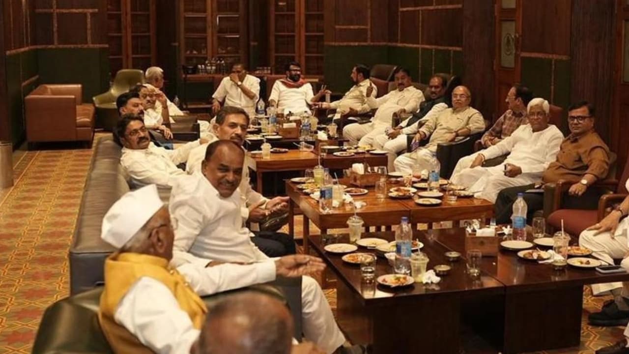ರಾಷ್ಟ್ರ ರಾಜಧಾನಿಯ ರಾಜಾಜಿಮಾರ್ಗದಲ್ಲಿರುವ ಮಲ್ಲಿಕಾರ್ಜುನ ಖರ್ಗೆ ಅವರ ಮನೆಗೆ ಸೋಮವಾರ 23 ಶಾಸಕರ ನಿಯೋಗ ತೆರಳಿದ್ದು, ರಾಜ್ಯ ರಾಜಕಾರಣದ ಕುರಿತು ಚರ್ಚೆ ನಡೆಸಿದ್ದಾರೆ.