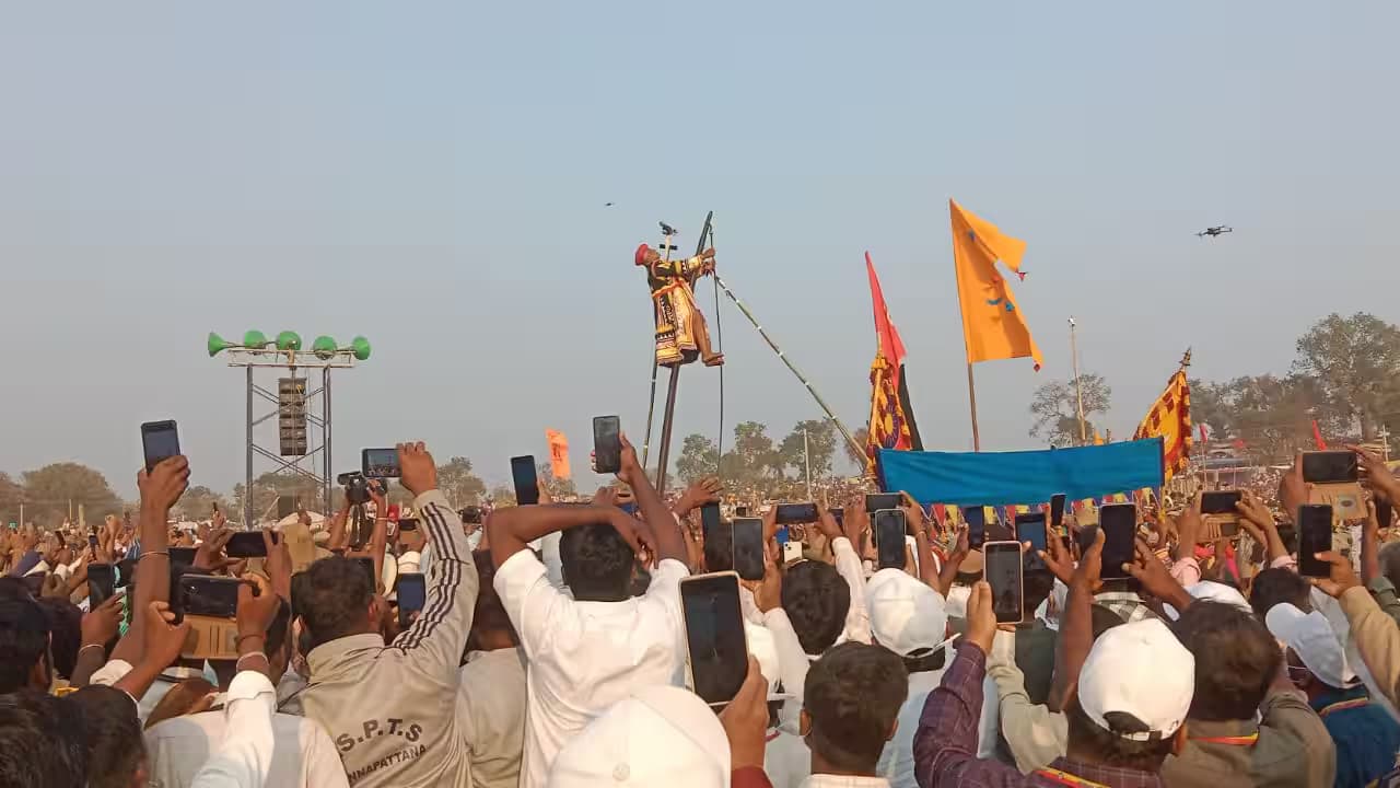 ಸಂಪಾಯಿತಲೇ ಪರಾಕ್…ಮೈಲಾರಲಿಂಗೇಶ್ವರ ಸ್ವಾಮಿ ಮೈಲಾರ ಪುಣ್ಯ ಭೂಮಿ ಡೆಂಕಣ ಮರಡಿಯಲ್ಲಿ ಲಕ್ಷಾಂತರ ಭಕ್ತರ ಸಮೂಹದ ಮಧ್ಯೆ ತುಪ್ಪ ಸವರಿದ 20 ಅಡಿ ಎತ್ತರದ ಐತಿಹಾಸಿಕ ಬಿಲ್ಲನ್ನೇರಿದ ಗೊರವಯ್ಯ ಕಾರ್ಣಿಕ
