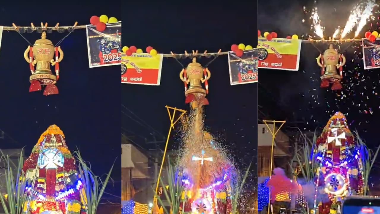 ಸಿದ್ದೇಶ್ವರ ಜಾತ್ರೆ ಬರವು ದಾರಿಯಲ್ಲಿ ಆರ್ಸಿಬಿಯ ಚಾಂಪಿಯನ್ ಬ್ಯಾನರ್ ಕಟ್ಟಲಾಗಿದೆ. ಬಳಿಕ ಎತ್ತರದಲ್ಲಿ ಐಪಿಎಲ್ ಟ್ರೋಫಿ ಹೋಲುವ ಪ್ರತಿಯನ್ನು ಕಟ್ಟಲಾಗಿತ್ತು. ಈ ಟ್ರೋಫಿ ಒಳಗೆ ಹೂವಿನ ದಳಗಳನ್ನು ತುಂಬಿಸಲಾಗಿತ್ತು. ರಥೋತ್ಸವ ಈ ದಾರಿಯಲ್ಲಿ ಆಗಮಿಸುತ್ತಿದ್ದಂತೆ ಟ್ರೋಫಿಯಿಂದ ಹೂವಿನ ಮಳೆ ಸುರಿಸಲಾಗಿತ್ತು.