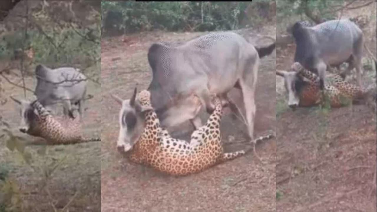 ಅಂದಹಾಗೆ ಈ ಘಟನೆ ನಡೆದಿರುವುದು ರಾಜಸ್ಥಾನದ ಕೋಟಾ ಜಿಲ್ಲೆಯ ಕೋಲಿಪುರ ಗ್ರಾಮದ ಬಳಿಯ ಮುಕುಂದ್ರ ಟೈಗರ್ ಹಿಲ್ಸ್ ಪ್ರದೇಶದಲ್ಲಿ. ಇಲ್ಲಿ ಚಿರತೆಯೊಂದು ಹೋರಿಯನ್ನು ಬೇಟೆಯಾಡುವುದಕ್ಕೆ ಪ್ರಯತ್ನಿಸಿ ವಿಫಲವಾಗಿದೆ. ಹೋರಿಯ ವಿರೋಚಿತ ಹೋರಾಟದ ಅದರ ಜೀವ ಉಳಿಸಿದೆ. 30 ಸೆಕೆಂಡ್‌ಗಳ ವೀಡಿಯೋದಲ್ಲಿ ಚಿರತೆಯೊಂದು ಹೋರಿಯ ಕತ್ತಿಗೆ ಕತ್ತಿನ ಕೆಳಭಾಗದಿಂದ ಬಾಯಿ ಹಾಕಿದೆ. ಈ ವೇಳೆ ಹೋರಿ ತನ್ನ ಪಾದಗಳಿಂದ ಚಿರತೆಯನ್ನು ತುಳಿಯುವುದಕ್ಕೆ ಆರಂಭಿಸಿದ್ದು, ಹೋರಿ ತುಳಿದರೂ ಚಿರತೆಯೇನು ಅಷ್ಟು ಸುಲಭದಲ್ಲಿ ಹೋರಿಯನ್ನು ಸುಮ್ಮನೇ ಬಿಟ್ಟಿಲ್ಲ. ಹೋರಿಯ ತುಳಿತದ ನಡುವೆಯೂ ಅದು ತನ್ನ ಹಿಡಿತವನ್ನು ಬಿಗಿಗೊಳಿಸುವ ಪ್ರಯತ್ನ ಮಾಡಿದೆ. ಆದರೆ ಹೋರಿಗಿದು ತನ್ನ ಸಾವು ಬದುಕಿನ ಪ್ರಶ್ನೆ ಹೀಗಾಗಿ ಹೋರಿ ಉಳಿದರೆ ಜೀವನ ಸತ್ತರೆ ಮರಣ ಎಂದು ಅರಿತು ಅಮೋಘವಾಗಿ ಚಿರತೆ ವಿರುದ್ಧ ಹೋರಾಡಿದ್ದು, ತನ್ನ ಕಾಲಿನ ಗೊರಸುಗಳ ಮೂಲಕ ಚಿರತೆಯನ್ನು ಸರಿಯಾಗಿ ತುಳಿದು ಹಾಕಿದ್ದು, ಕಡೆಗೂ ಚಿರತೆ ತನ್ನ ಹಿಡಿತವನ್ನು ಸಡಿಲಿಸಿಕೊಂಡು ಹೋರಿಯನ್ನು ಬಿಟ್ಟು ದೂರ ಹೋಗುವಲ್ಲಿ ಯಶಸ್ವಿಯಾಗಿದ್ದು, ಈ ಅಪರೂಪದ ವೀಡಿಯೋ ಈಗ ಸಾಮಾಜಿಕ ಜಾಲತಾಣದಲ್ಲಿ ಭಾರಿ ವೈರಲ್ ಆಗುತ್ತಿದೆ.
