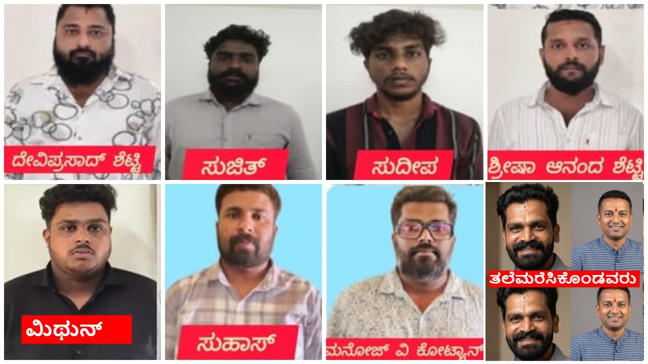 ಈ ಪ್ರಕರಣದಲ್ಲಿ ಬಂಧಿತರಾದವರು ಸುರತ್ಕಲ್ ಕಾಟಿಪಳ್ಳದ ದೇವಿಪ್ರಸಾದ್ ಶೆಟ್ಟಿ (33), ಸುದೀಪ್ (22), ಮಿಥುನ್ ಕೈಕಂಬ (20), ಕೃಷ್ಣಾಪುರದ ಶ್ರೀಷಾ ಆನಂದ ಶೆಟ್ಟಿ (35), ಹಿರಿಯಡ್ಕ ಅಂಜಾರು ಗ್ರಾಮದ ಸುಜಿತ್ (27), ಕೆಮ್ಮಣ್ಣು ಗ್ರಾಮ ಪಡುಕುದ್ರುವಿನ ಸುಹಾಸ್ (31) ಹಾಗೂ ಕೆಮ್ಮಣ್ಣು ಹೂಡೆಯ ಮನೋಜ್ ವಿ. ಕೋಟ್ಯಾನ್ (34) ಆಗಿದ್ದಾರೆ. ಈ ಆರೋಪಿಗಳನ್ನು ಪೊಲೀಸರು ಬಂಧಿಸಿ ವಿಚಾರಣೆ ನಡೆಸುತ್ತಿದ್ದಾರೆ.