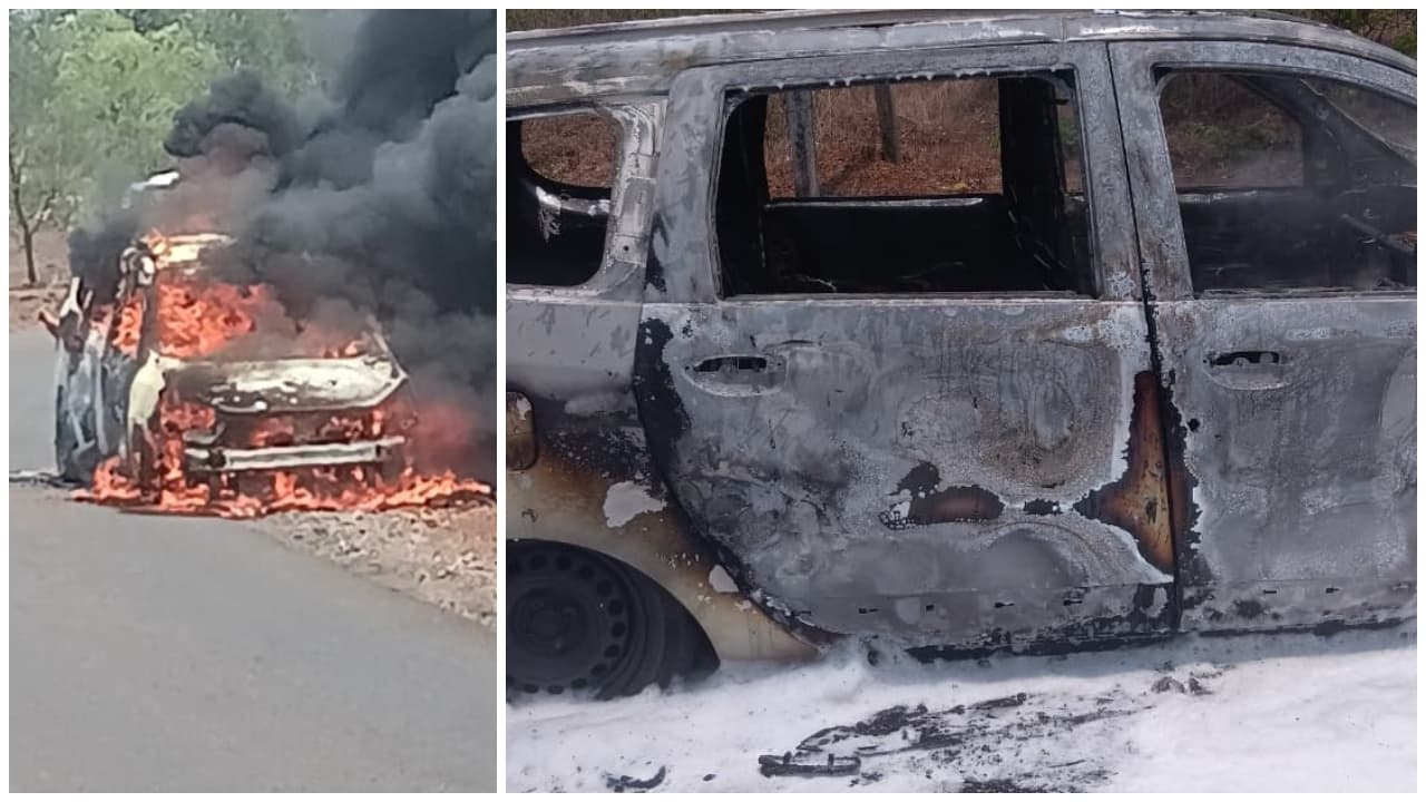 ಬೆಂಕಿಯ ಕೆನ್ನಾಲಿಗೆಯಲ್ಲಿ ಧಗಧಗ ಹೊತ್ತಿ ಉರಿದ ಐವರು ಮದುವೆಗೆ ತೆರಳುತ್ತಿದ್ದವರ ಕಾರ್