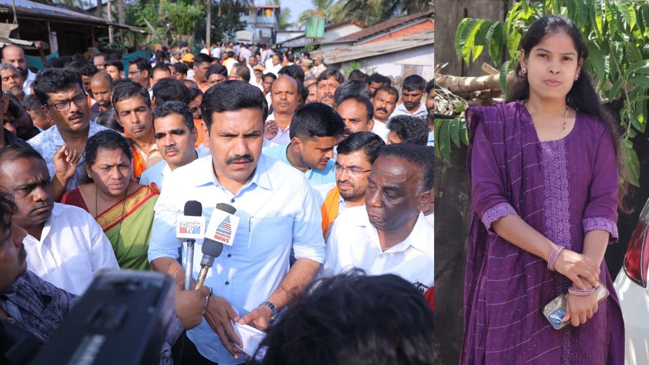 ಉತ್ತರ ಕನ್ನಡ (ಜ.04): ವಿವಾಹ ಪ್ರಸ್ತಾಪ ತಿರಸ್ಕರಿಸಿದ ಕಾರಣಕ್ಕೆ ನಡುರಸ್ತೆಯಲ್ಲೇ ಭೀಕರವಾಗಿ ಹತ್ಯೆಗೊಳಗಾದ ಹಿಂದೂ ಮಹಿಳೆ ರಂಜಿತಾ ಬನ್ಸೋಡೆ ಅವರ ನಿವಾಸಕ್ಕೆ ಬಿಜೆಪಿ ರಾಜ್ಯಾಧ್ಯಕ್ಷ ಬಿ.ಎಸ್. ವಿಜಯೇಂದ್ರ ಭೇಟಿ ನೀಡಿ ಅಂತಿಮ ಗೌರವ ಸಲ್ಲಿಸಿದರು. ಘಟನೆಯಿಂದ ತೀವ್ರ ಆಘಾತಕ್ಕೊಳಗಾಗಿರುವ ಕುಟುಂಬಕ್ಕೆ ಸಾಂತ್ವನ ಹೇಳಿದ ಅವರು, ಬಿಜೆಪಿ ವತಿಯಿಂದ 5 ಲಕ್ಷ ರೂಪಾಯಿಗಳ ಪರಿಹಾರ ಧನವನ್ನು ಹಸ್ತಾಂತರಿಸಿದರು.