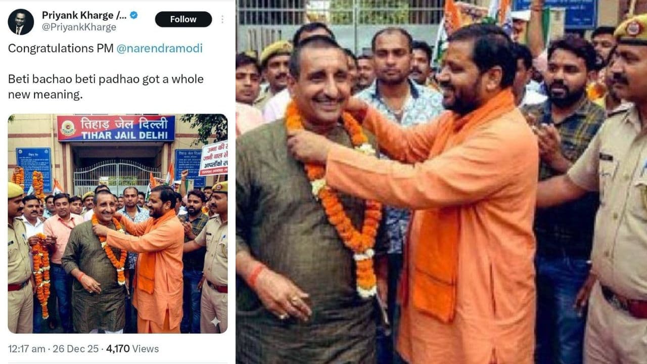 ಸಚಿವ ಪ್ರಿಯಾಂಕ್ ಖರ್ಗೆ ಅವರು ತಿಹಾರ್ ಜೈಲಿನ ಮುಂಭಾಗ ವ್ಯಕ್ತಿಯೊಬ್ಬರಿಗೆ ಹಾರ ಹಾಕುತ್ತಿರುವ ಚಿತ್ರವೊಂದನ್ನು ಹಂಚಿಕೊಂಡು, ‘ಬೇಟಿ ಬಚಾವೋ ಬೇಟಿ ಪಢಾವೋ ಯೋಜನೆಗೆ ಈಗ ಹೊಸ ಅರ್ಥ ಸಿಕ್ಕಿದೆ’ ಎಂದು ವ್ಯಂಗ್ಯವಾಗಿ ಪೋಸ್ಟ್ ಮಾಡಿದ್ದರು. ಈ ಪೋಸ್ಟ್ ಪ್ರಧಾನಿ ಮೋದಿ ಅವರನ್ನು ಗುರಿಯಾಗಿಸಿಕೊಂಡಿತ್ತು. ಆದರೆ, ಈ ಚಿತ್ರವು ಕೃತಕ ಬುದ್ಧಿಮತ್ತೆ (AI) ಬಳಸಿ ಸೃಷ್ಟಿಸಲಾದ ನಕಲಿ ಚಿತ್ರವಾಗಿದ್ದು, ಸಚಿವರು ದುರುದ್ದೇಶಪೂರ್ವಕವಾಗಿ ಇದನ್ನು ಹರಡುತ್ತಿದ್ದಾರೆ ಎಂಬುದು ರಾಜ್ಯ ಬಿಜೆಪಿ ಘಟಕದಿಂದ ಆರೋಪ ಮಾಡಲಾಗಿದೆ.