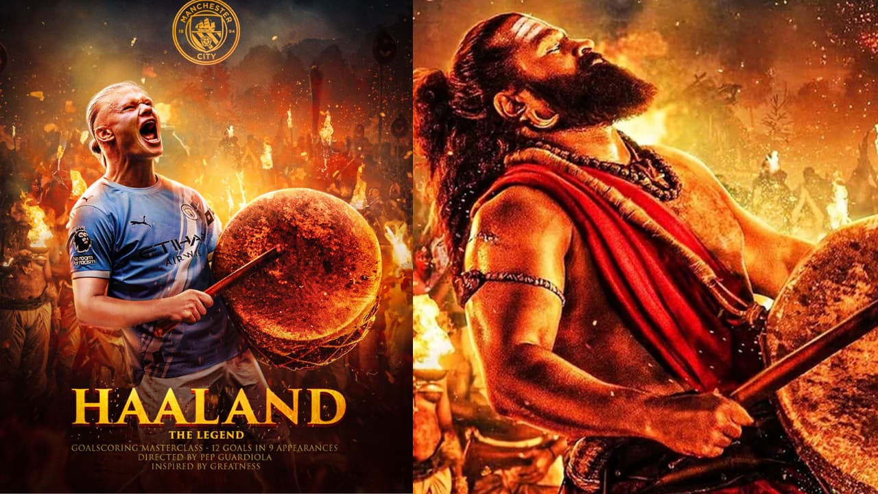 Kantara craze in England ಇಂಗ್ಲೆಂಡ್‌ನಲ್ಲೂ ಕಾಂತಾರಾ ಮೋಡಿ, ಮ್ಯಾಂಚೆಸ್ಟರ್ ಸಿಟಿ ಫುಟ್ಬಾಲ್ ತಂಡದ ಪೋಸ್ಟರ್ | Manchester City Welcome Erling Haaland With Kantara Chapter 1 Style Poster