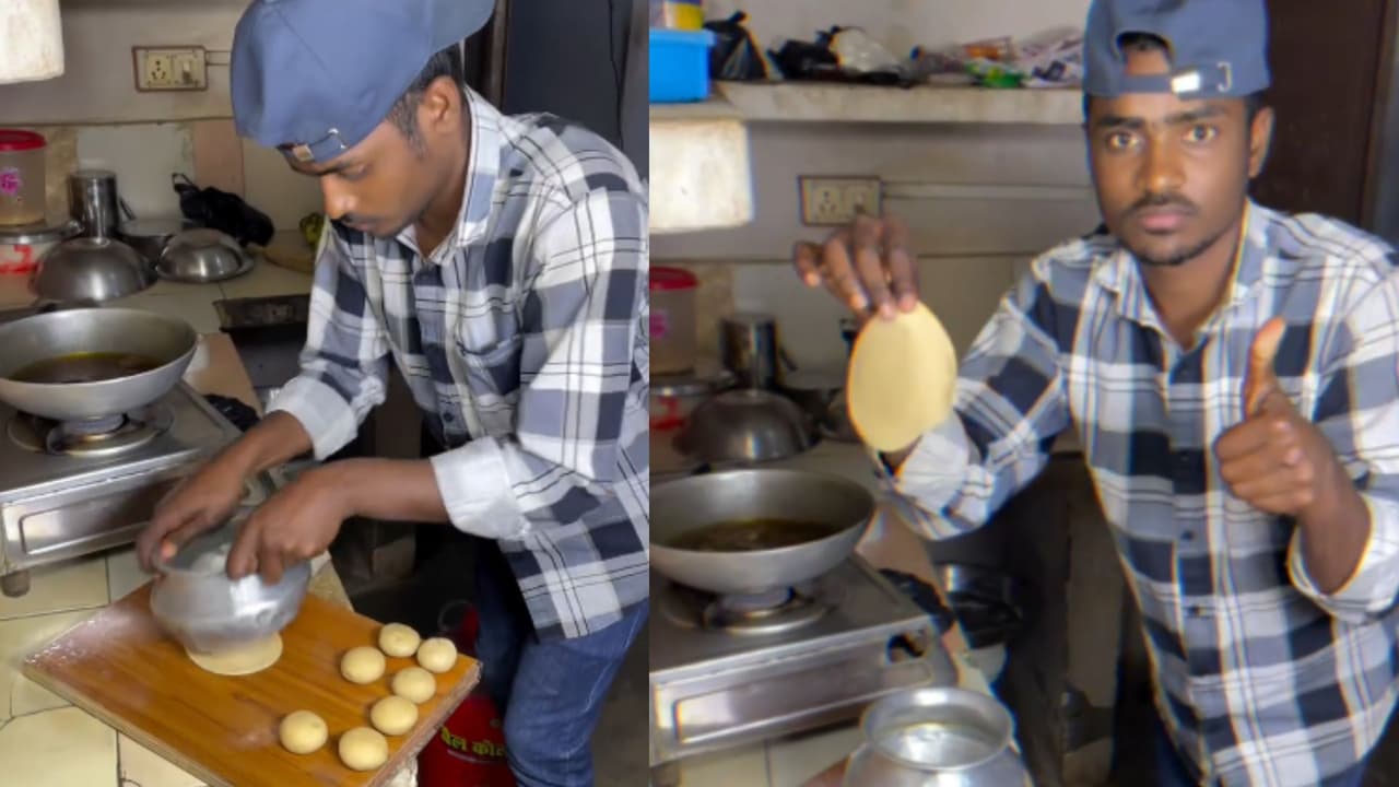 ಅಡುಗೆ ಮಾಡುವುದು ಒಂದು ಕಲೆಯಾದರೆ, ಅದರಲ್ಲಿ ಸೃಜನಶೀಲತೆಯನ್ನು ತೋರಿಸುವುದು ಮತ್ತೊಂದು ಕಲೆ. ಅದರಲ್ಲೂ ಪೂರಿ ಮಾಡಬೇಕೆಂದರೆ ಹಿಟ್ಟಿನ ಉಂಡೆಗಳನ್ನು ಲಟ್ಟಣಿಗೆಯಿಂದ ಸಮನಾಗಿ ಮತ್ತು ಗುಂಡಗೆ ಲಟ್ಟಿಸುವುದು ಬಹಳ ತಾಳ್ಮೆಯ ಕೆಲಸ. ಅನೇಕರಿಗೆ ಇದು ಕಷ್ಟದ ಕೆಲಸವೆಂದೇ ಅನ್ನಿಸುತ್ತದೆ. ಆದರೆ ಸೋಶಿಯಲ್ ಮೀಡಿಯಾದಲ್ಲಿ ವೈರಲ್ ಆಗುತ್ತಿರುವ ಈ ವಿಡಿಯೋದಲ್ಲಿನ ವ್ಯಕ್ತಿ ಆ ಕಷ್ಟವನ್ನು ಚಿಟಿಕೆ ಹೊಡೆಯುವುದರೊಳಗೆ ಮಾಯ ಮಾಡಿದ್ದಾನೆ.