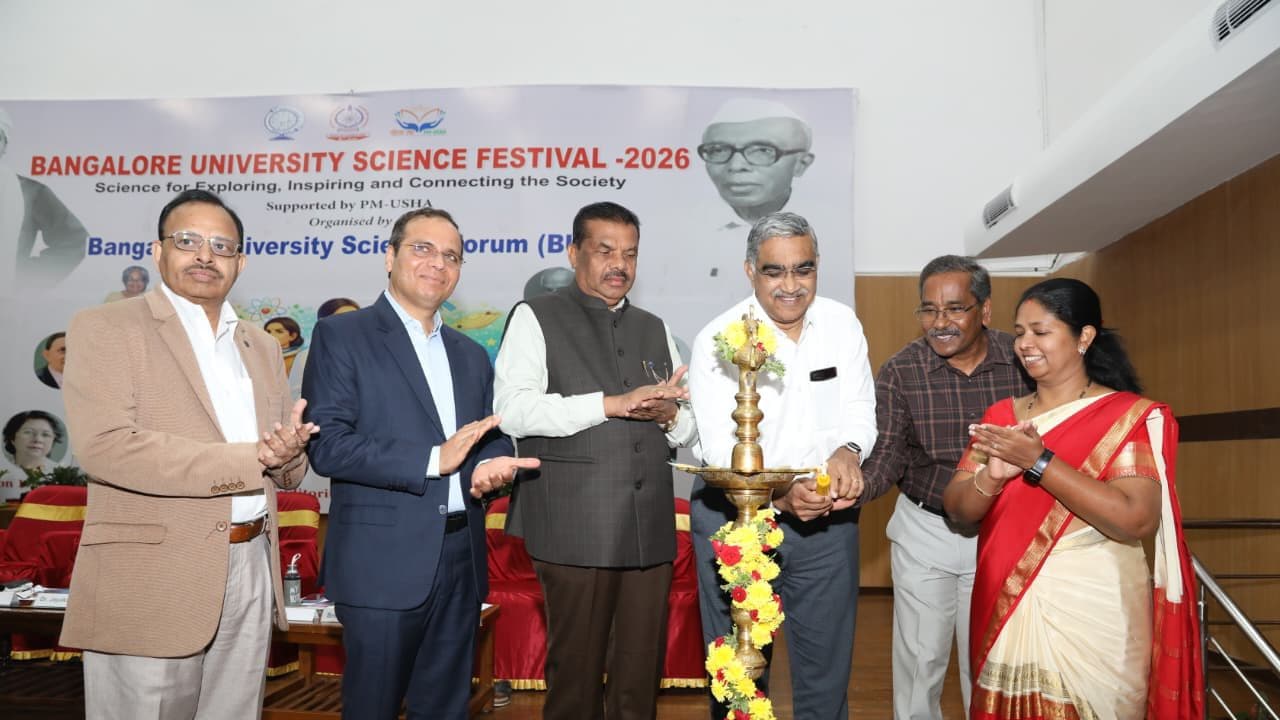 ಜ್ಞಾನಭಾರತಿ ಆವರಣದಲ್ಲಿ ಬೆಂಗಳೂರು ವಿಶ್ವವಿದ್ಯಾಲಯ ಸೈನ್ಸ್ ಫೋರಮ್ (ಬಿಯುಎಸ್‌ಎಫ್) ಹಾಗೂ ಪಿಎಂ ಉಷಾ ಸಹಯೋಗದೊಂದಿಗೆ ಆಯೋಜಿಸಿದ್ದ ಬೆಂಗಳೂರು ವಿಶ್ವವಿದ್ಯಾಲಯ ವಿಜ್ಞಾನ ಉತ್ಸವ – 2026 ಉದ್ಘಾಟಿಸಲಾಯಿತು.