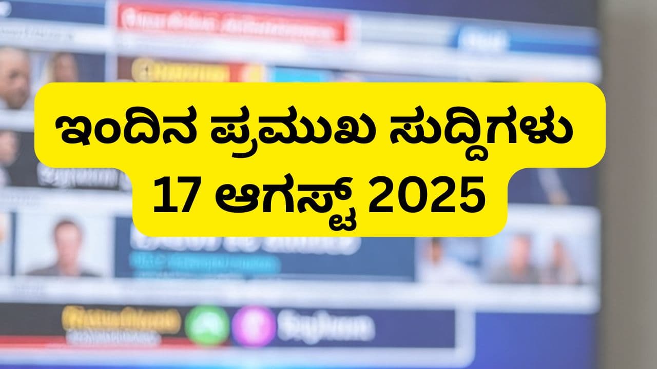 ಇಂದಿನ ಪ್ರಮುಖ ಸುದ್ದಿಗಳು: ಇಂದು ಬೆಳಗ್ಗೆಯೇ ರಾಜ್ಯ ಬಿಜೆಪಿ ನಾಯಕರು ಧರ್ಮಸ್ಥಳಕ್ಕೆ ಭೇಟಿ ನೀಡಿದ್ದಾರೆ. ಈ ನಡೆಯನ್ನು ಡಿಸಿಎಂ ಡಿಕೆ ಶಿವಕುಮಾರ್ ಟೀಕಿಸಿದ್ದಾರೆ. ವೈರಿ ದೇಶ ಪಾಕಿಸ್ತಾನಕ್ಕೆ ಚೀನಾ ಜಲಂತರ್ಗಾಮಿ ನೀಡಿದೆ. ಆಗಸ್ಟ್ 17, 2025ರ ಈವರೆಗಿನ ಪ್ರಮುಖ 5 ಸುದ್ದಿಗಳು ಇಲ್ಲಿವೆ.