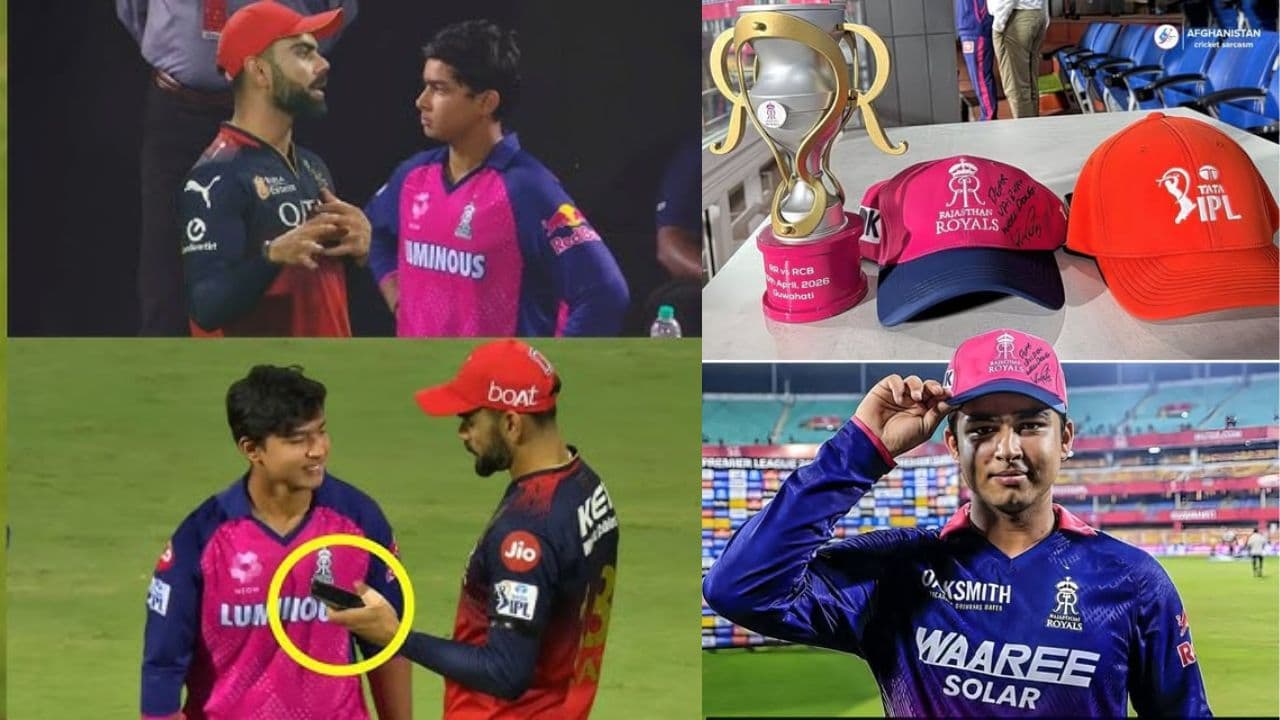ಆರ್‌ಸಿಬಿ ವಿರುದ್ಧ 26 ಎಸೆತಗಳಲ್ಲಿ 78 ರನ್ ಚಚ್ಚಿದ ರಾಜಸ್ಥಾನ್ ರಾಯಲ್ಸ್‌ ತಂಡದ ಕಿರಿಯ ಆಟಗಾರ ವೈಭವ್ ಸೂರ್ಯವಂಶಿಗೆ ವಿರಾಟ್ ಕೊಹ್ಲಿ ವಿಶೇಷ ಟೋಪಿ ಉಡುಗೊರೆ ನೀಡಿದ್ದಾರೆ. ವೈಭವ್ ಈ ವಿಶೇಷ ಕ್ಷಣವನ್ನು ಸಂಭ್ರಮಿಸಿದ್ದು ಹೇಗೆ ಇಲ್ಲಿದೆ ಮಾಹಿತಿ.