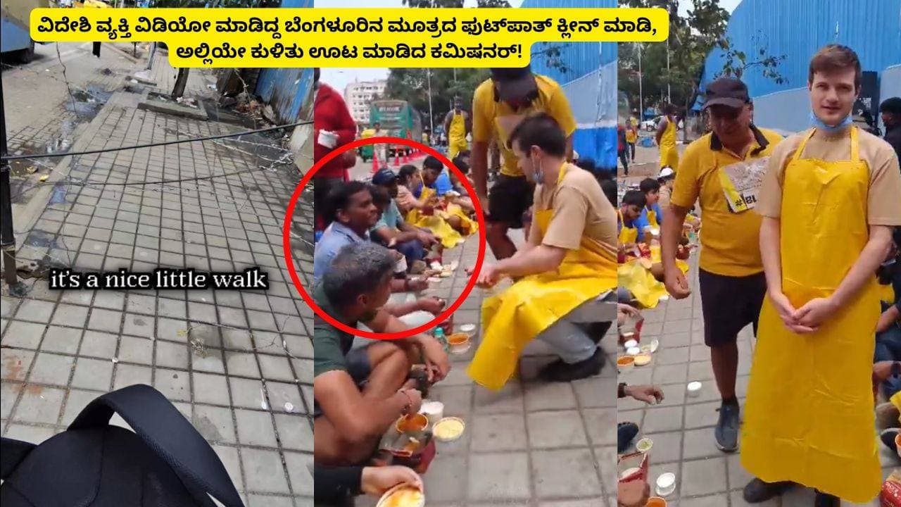 ವಿದೇಶಿ ವ್ಯಕ್ತಿ ವಿಡಿಯೋ ಮಾಡಿದ್ದ ಬೆಂಗಳೂರಿನ ಮೂತ್ರದ ಫುಟ್‌ಪಾತ್ ಸ್ವಚ್ಛಗೊಳಿಸಿ, ಅಲ್ಲಿಯೇ ಊಟ ಮಾಡಿದ ಕಮಿಷನರ್! | Greater Bengaluru Commissioner Eats On Cleaned Footpath After Viral Video Sat