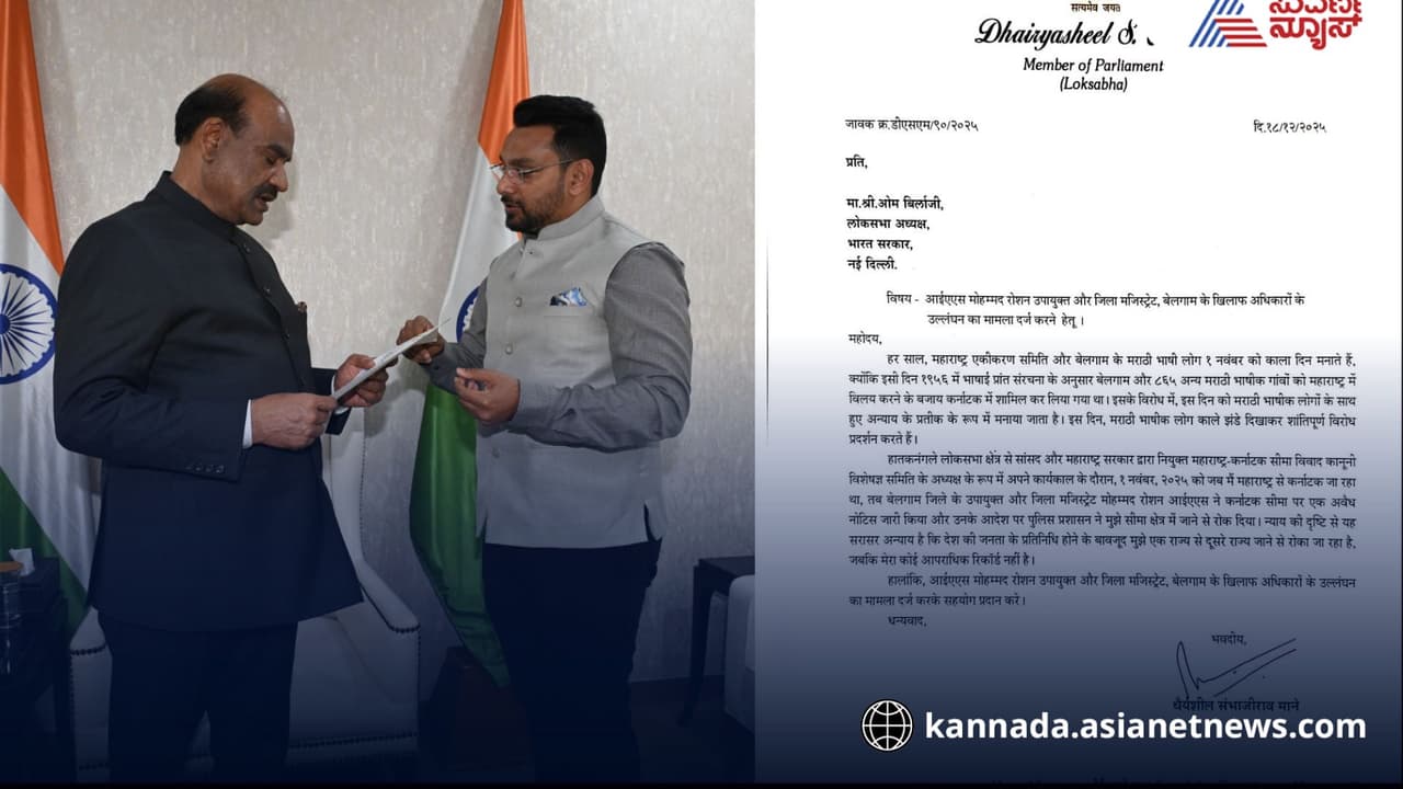 ಮಹಾರಾಷ್ಟ್ರದ ಏಕನಾಥ್ ಶಿಂಧೆ ಬಣದ ಶಿವಸೇನೆ ಸಂಸದ ಧೈರ್ಯಶೀಲ ಮಾನೆ, ಬೆಳಗಾವಿ ಡಿಸಿ ಮೊಹಮ್ಮದ್ ರೋಷನ್ ವಿರುದ್ಧ ಲೋಕಸಭೆ ಸ್ಪೀಕರ್ ಓಂ ಬಿರ್ಲಾ ಅವರಿಗೆ ಹಕ್ಕುಚ್ಯುತಿ ಉಲ್ಲಂಘನೆಯ ದೂರು ನೀಡಿದ್ದಾರೆ. ಜಿಲ್ಲಾಧಿಕಾರಿಗಳು ತಮಗೆ ಬೆಳಗಾವಿ ಪ್ರವೇಶ ನಿರಾಕರಿಸುವ ಮೂಲಕ ಒಬ್ಬ ಸಂಸದನ ಹಕ್ಕುಗಳನ್ನು ಕಿತ್ತುಕೊಂಡಿದ್ದಾರೆ ಎಂದು ಅವರು ದೂರಿನಲ್ಲಿ ಉಲ್ಲೇಖಿಸಿದ್ದಾರೆ.