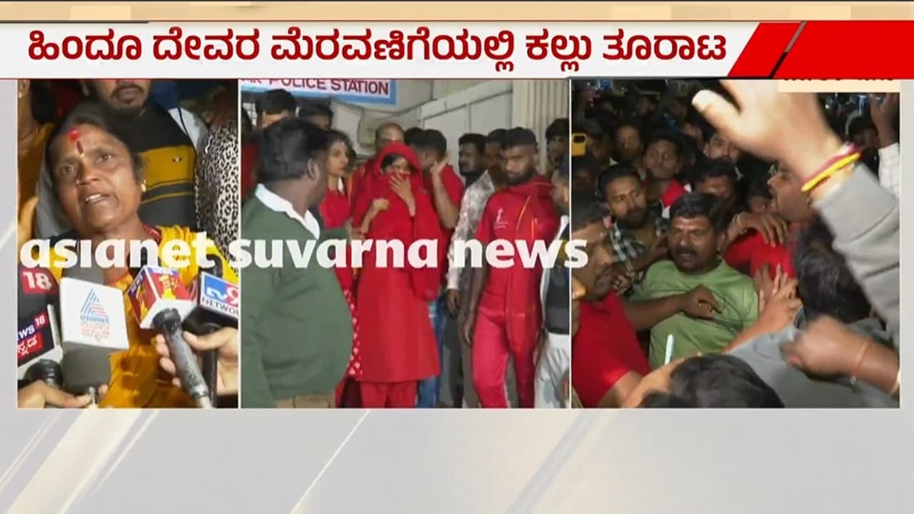 Om Shakti Pilgrims ಜೆಜೆ ನಗರದಲ್ಲಿ ಓಂ ಶಕ್ತಿ ಮಾಲಾಧಾರಿಗಳ ಮೇಲೆ ಕಲ್ಲೆಸೆತ, ಠಾಣೆ ಮುಂಭಾಗ ಜಮಾಯಿಸಿದ ಜನ | Tension In Bengaluru Jj Nagar After Stones Pelted At Om Shakti Pilgrims