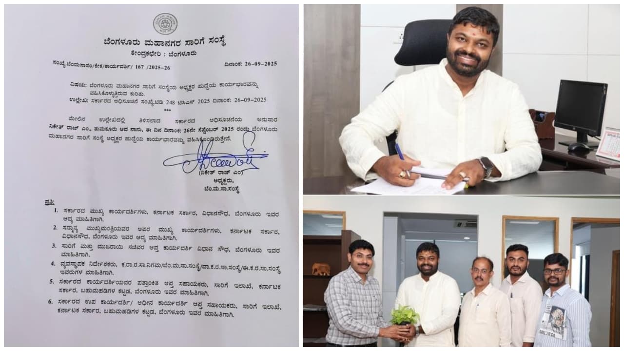 ಕರ್ನಾಟಕ ಪ್ರದೇಶ ಕಾಂಗ್ರೆಸ್ ಸಮಿತಿ (KPCC) ವಕ್ತಾರರಾದ ನಿಕೇತ್ ರಾಜ್ ಮೌರ್ಯ ಅವರು ಬೆಂಗಳೂರು ಮಹಾನಗರ ಸಾರಿಗೆ ಸಂಸ್ಥೆ (BMTC)ಯ ನೂತನ ಅಧ್ಯಕ್ಷರಾಗಿ ಅಧಿಕಾರ ಸ್ವೀಕರಿಸಿದ್ದಾರೆ. ಬಿಎಂಟಿಸಿಯನ್ನು ಮತ್ತಷ್ಟು ಜನಪರ ಮತ್ತು ಪರಿಣಾಮಕಾರಿಯಾಗಿಸಲು ಶ್ರಮಿಸುವುದಾಗಿ ಅವರು ಭರವಸೆ ನೀಡಿದೆ.