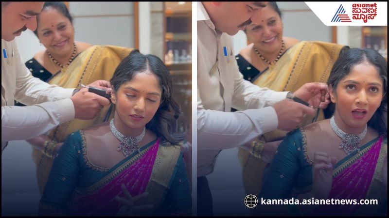 ಚಂದದ ಸಿಲ್ಕ್ ಸೀರೆಯುಟ್ಟು, ಸುಂದರವಾಗಿರುವ ನೆಕ್ಲೇಸ್ ಧರಿಸಿ ಗೊಂಬೆಯಂತೆ ಅಲಂಕಾರಗೊಂಡಿರುವ ಭವ್ಯಾ ಗೌಡ ಕಿವಿ ಚುಚ್ಚಿಸಿಕೊಳ್ತಿದ್ದಾರೆ. ಅವರ ಮುಖದಲ್ಲಿ ಟೆನ್ಷನ್ ಸ್ಪಷ್ಟವಾಗಿ ಕಾಣ್ತಿದೆ. ಕೈ ಮುಗಿದು, ಕಣ್ಣು ಮುಚ್ಚಿರುವ ಅವರು ಒಂದು ಬುಲೆಟ್ ಬೀಳ್ತಿದ್ದಂತೆ ಅಯ್ಯೋ, ಅಮ್ಮ ಅಂತ ಕಿರುಚಿಕೊಳ್ತಾರೆ. ಅವ್ರ ಹಿಂದೆ ನಿಂತಿದ್ದ ಅಮ್ಮ, ನಗ್ತಿರೋದನ್ನು ವಿಡಿಯೋದಲ್ಲಿ ನೀವು ಕಾಣ್ಬಹುದು. ಮತ್ತೊಂದು ಕಿವಿ ಚುಚ್ಚುವಾಗ್ಲೂ ಭವ್ಯಾ ಗೌಡ ಕಿರುಚಿಕೊಳ್ತಾರೆ. ಅಯ್ಯೋ, ಉರಿ ಅಂತಾರೆ. ಕಿವಿ ಹಿಡಿದುಕೊಂಡು ತಲೆ ತಗ್ಗಿಸಿರೋದನ್ನು ನೀಡಿದ್ರೆ ಭವ್ಯ ಗೌಡ ಸಾಕಷ್ಟು ನೋವು ತಿಂದಿರೋದು ಸ್ಪಷ್ಟ. ಅವರ ಮುಖ ಉರಿಗೆ ಕೆಂಪಾಗಿದೆ. ಆದ್ರೆ ಹೊಸ ಲುಕ್ ನಲ್ಲಿ ಭವ್ಯಾ ಗೌಡ ಸೌಂದರ್ಯ ಡಬಲ್ ಆಗಿದೆ.