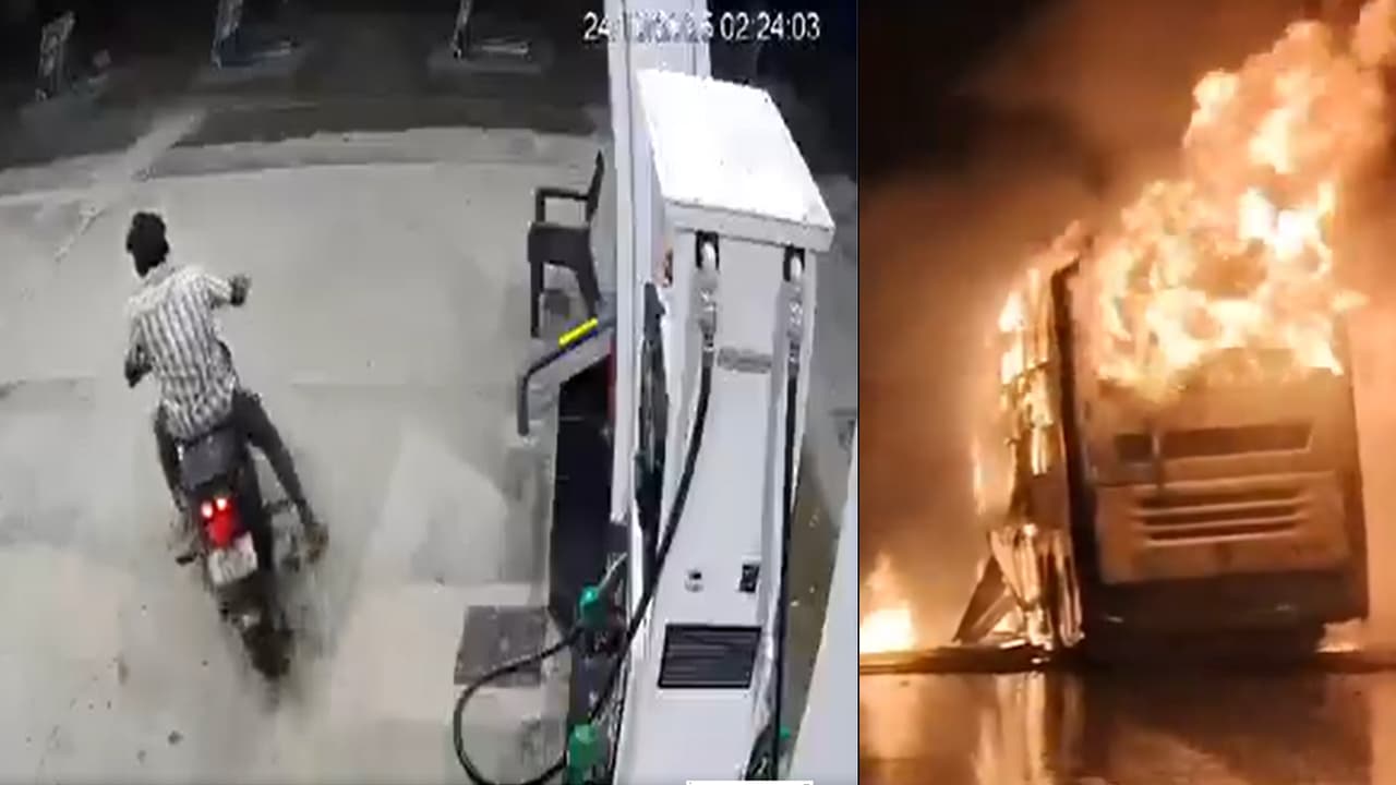 ಕರ್ನೂಲ್ ಬಸ್ ದುರಂತ, ಇಬ್ಬರು ಬೈಕರ್ಸ್ ಸಿಸಿಟಿವಿ ದೃಶ್ಯದಲ್ಲಿ ಅಸಲಿ ಕತೆ ಬಹಿರಂಗ, ಬಸ್ ಹೊತ್ತಿ ಉರಿದು 20 ಮಂದಿ ಮೃತಪಟ್ಟ ಘಟನೆಗೆ ಮುಖ್ಯ ಕಾರಣ ಬೈಕ್. ಅಪಘಾತಕ್ಕೂ ಮುನ್ನ ನಡೆದಿದ್ದೇನು?