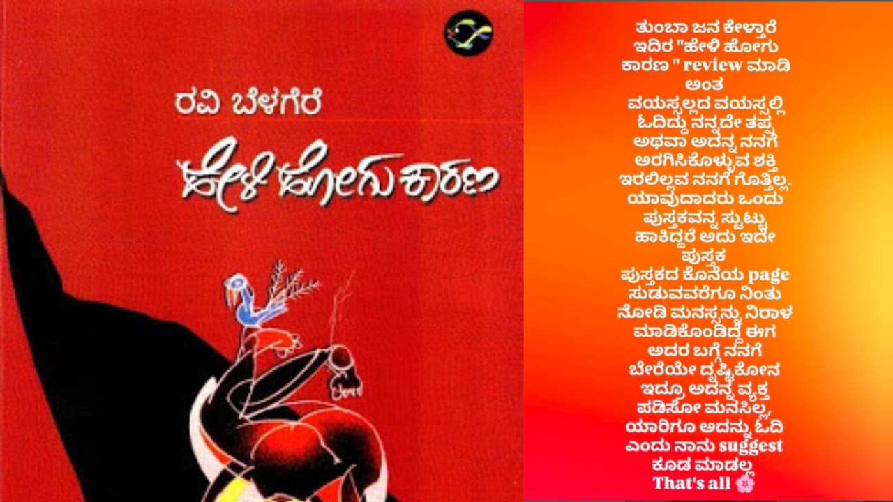 ‘ತುಂಬಾ ಜನ ಕೇಳ್ತಾರೆ ಇದಿರ “ಹೇಳಿ ಹೋಗು ಕಾರಣ ” review ಮಾಡಿ ಅಂತ. ವಯಸ್ಸಲ್ಲದ ವಯಸ್ಸಲ್ಲಿ ಓದಿದ್ದು ನನ್ನದೇ ತಪ್ಪ ಅಥವಾ ಅದನ್ನ ನನಗೆ ಅರಗಿಸಿಕೊಳ್ಳುವ ಶಕ್ತಿ ಇರಲಿಲ್ಲವ ನನಗೆ ಗೊತ್ತಿಲ್ಲ. ಯಾವುದಾದರು ಒಂದು ಪುಸ್ತಕವನ್ನ ಸುಟ್ಟು ಹಾಕಿದ್ದರೆ ಅದು ಇದೇ ಪುಸ್ತಕ. ಪುಸ್ತಕದ ಕೊನೆಯ page ಸುಡುವವರೆಗೂ ನಿಂತು ನೋಡಿ ಮನಸ್ಸನ್ನು ನಿರಾಳ ಮಾಡಿಕೊಂಡಿದ್ದೆ.ಈಗ ಅದರ ಬಗ್ಗೆ ನನಗೆ ಬೇರೆಯೇ ದೃಷ್ಟಿಕೋನ ಇದ್ರೂ ಅದನ್ನ ವ್ಯಕ್ತಪಡಿಸೋ ಮನಸಿಲ್ಲ, ಯಾರಿಗೂ ಅದನ್ನು ಓದಿ ಎಂದು ನಾನು suggest ಕೂಡ ಮಾಡಲ್ಲ That’s all’ ಎಂದು ಅವರು ಬರೆದುಕೊಂಡಿದ್ದಾರೆ.