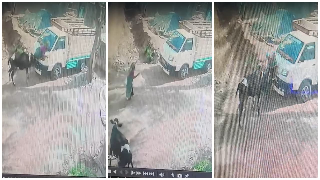ಹಾವೇರಿ: ಏಕಾಏಕಿ ಹಸು ದಾಳಿ, ಒಂದೇ ಗುದ್ದಿಗೆ ಟಾಟಾ ಎಸಿ ವಾಹನದ ಮೇಲೆ ಹೋಗಿ ಬಿದ್ದ ಅಜ್ಜಿ! ದೃಶ್ಯ ವೈರಲ್ | Cow Attacks Elderly Woman In Haveri Cctv Captures Cow Hitting Old Woman Gdp