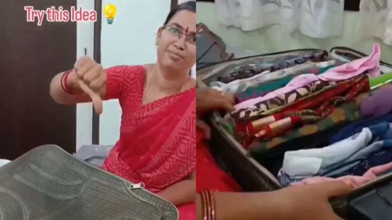 ಸಾಮಾನ್ಯವಾಗಿ ನಾವು ನಮ್ಮ ಬ್ಯಾಗ್‌ನಲ್ಲಿ ಬಟ್ಟೆಗಳನ್ನು ಪ್ಯಾಕ್ ಮಾಡುವಾಗ ಅವುಗಳನ್ನು ಅಡ್ಡಲಾಗಿ ಮಡಚಿ ಇಡುತ್ತೇವೆ. ಆದರೆ ಈ ವೈರಲ್ ವಿಡಿಯೋದಲ್ಲಿ ಬ್ಯಾಗ್‌ ಅನ್ನು ಲಂಬವಾಗಿ ಇರಿಸಿರುವುದಲ್ಲದೆ, ಬೀರುವಿನಲ್ಲಿ ಮಡಚಿಡುವ ಹಾಗೆ ಇಡುತ್ತಿರುವುದರಿಂದ ಹೆಚ್ಚಿನ ಬಟ್ಟೆಗಳನ್ನು ಹಿಡಿದಿಟ್ಟುಕೊಳ್ಳಬಹುದು ಎಂದು ಮಹಿಳೆ ವಿವರಿಸಿದ್ದಾರೆ. ವಿಡಿಯೋದಲ್ಲಿ ಮಹಿಳೆ ಮೊದಲು ಸೂಟ್‌ಕೇಸ್‌ ತೆಗೆದುಕೊಂಡು ಅಡ್ಡಲಾಗಿ, ಆ ನಂತರ ಲಂಬವಾಗಿ ಎರಡೂ ರೀತಿ ಜೋಡಿಸುವುದನ್ನು ತೋರಿಸಲಾಗಿದೆ. ಆದರೆ ಲಂಬವಾದ ಜೋಡಣೆಯು ಹೆಚ್ಚಿನ ಬಟ್ಟೆಗಳನ್ನು ಹಿಡಿದಿಟ್ಟುಕೊಳ್ಳುತ್ತದೆ ಎಂದು ತೋರುತ್ತದೆ. ಈ ಹ್ಯಾಕ್ ಅನ್ನು ಪ್ರದರ್ಶಿಸಲು ಮಹಿಳೆ ವಿಡಿಯೋ ಪೋಸ್ಟ್ ಮಾಡಿದ್ದು, ಸದ್ಯ ಅದು ವೈರಲ್ ಆಗಿದೆ.