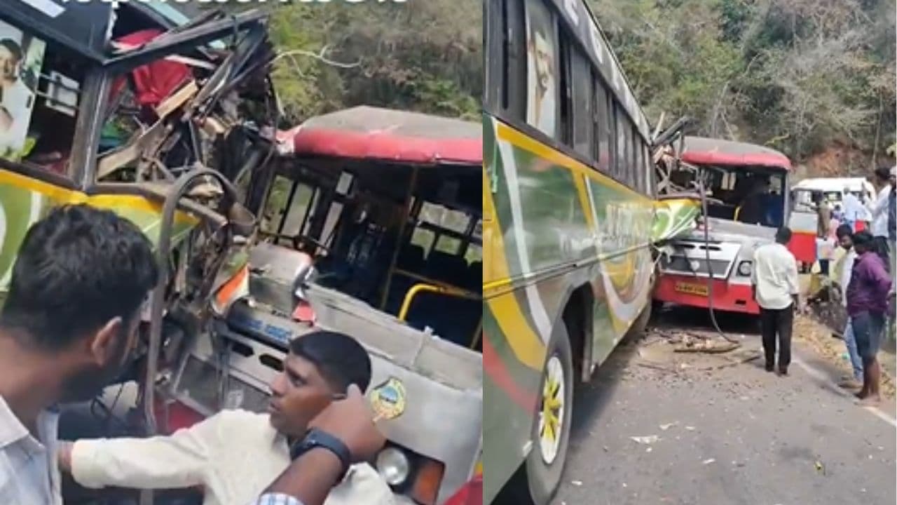 ಮಲೆ ಮಹದೇಶ್ವರ ಬೆಟ್ಟದ ತಿರುವಿನಲ್ಲಿ ಕೆಎಸ್‌ಆರ್‌ಟಿಸಿ-ಖಾಸಗಿ ಬಸ್ ಮುಖಾಮುಖಿ ಡಿಕ್ಕಿ; 10ಕ್ಕೂ ಹೆಚ್ಚು ಮಂದಿಗೆ ಗಾಯ | Mm Hills Road Accident Collision Between Ksrtc And Private Bus 10 Injury Sat