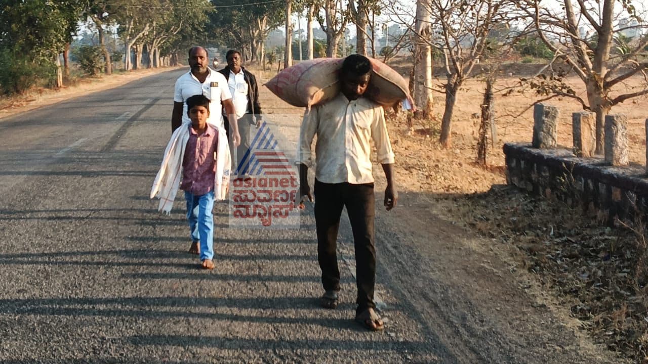 ತಾಳಕನಕಾಪೂರದ ಯುವಕ ಸಣ್ಣ ದುರ್ಗಪ್ಪ ತಮ್ಮೂರು ತಾಳಕನಕಾಪೂರದಿಂದ ಬರೋಬ್ಬರಿ ಅರ್ಧ ಕ್ವಿಂಟಲ್, 50 ಕೆಜಿ ಅಕ್ಕಿ ಪಾಕೆಟ್‌ನ್ನು ಹೇಗಲ ಮೇಲೆ ಹೊತ್ತುಕೊಂಡು ಕೊಪ್ಪಳ ನಗರದ ಗವಿಮಠಕ್ಕೆ ಬಂದಿದ್ದಾನೆ. ಗವಿಸಿದ್ದೇಶ್ವರ ಜಾತ್ರೆ ಅಂಗವಾಗಿ ಮಹಾದಾಸೋಹಕ್ಕೆ ದವಸ, ಧಾನ್ಯಗಳನ್ನು ಭಕ್ತರು ತಂದು ಸಮರ್ಪಿಸುತ್ತಿದ್ದಾರೆ.
