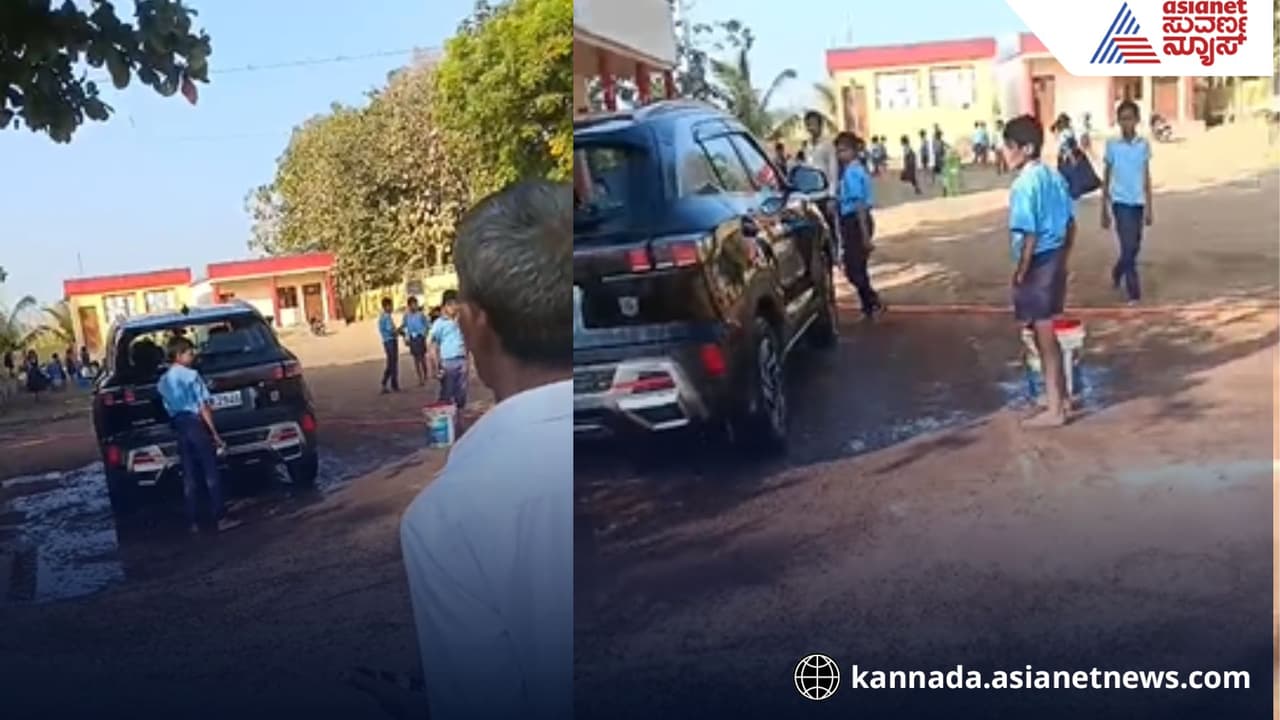 ಶಾಲಾ ಅವಧಿಯಲ್ಲಿ ಕಾರು ತೊಳೆಯುತ್ತಿರುವ ಮಕ್ಕಳ, ವಿಡಿಯೋ ವೈರಲ್