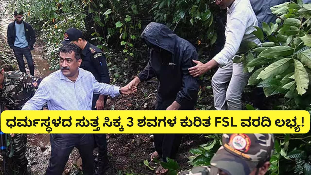 ಧರ್ಮಸ್ಥಳದಲ್ಲಿ ಶವಗಳನ್ನು ಹೂಳಲಾಗಿದೆ ಎಂಬ ಚಿನ್ನಯ್ಯನ ಆರೋಪದ ಮೇಲೆ ನಡೆದ ಎಸ್ಐಟಿ ತನಿಖೆಯಲ್ಲಿ ಮಹತ್ವದ ಬೆಳವಣಿಗೆಯಾಗಿದೆ. ಪತ್ತೆಯಾಗಿದ್ದ ಮೂರು ತಲೆಬುರುಡೆಗಳ ಎಫ್ಎಸ್ಎಲ್ ವರದಿ ಲಭ್ಯವಾಗಿದೆ.
