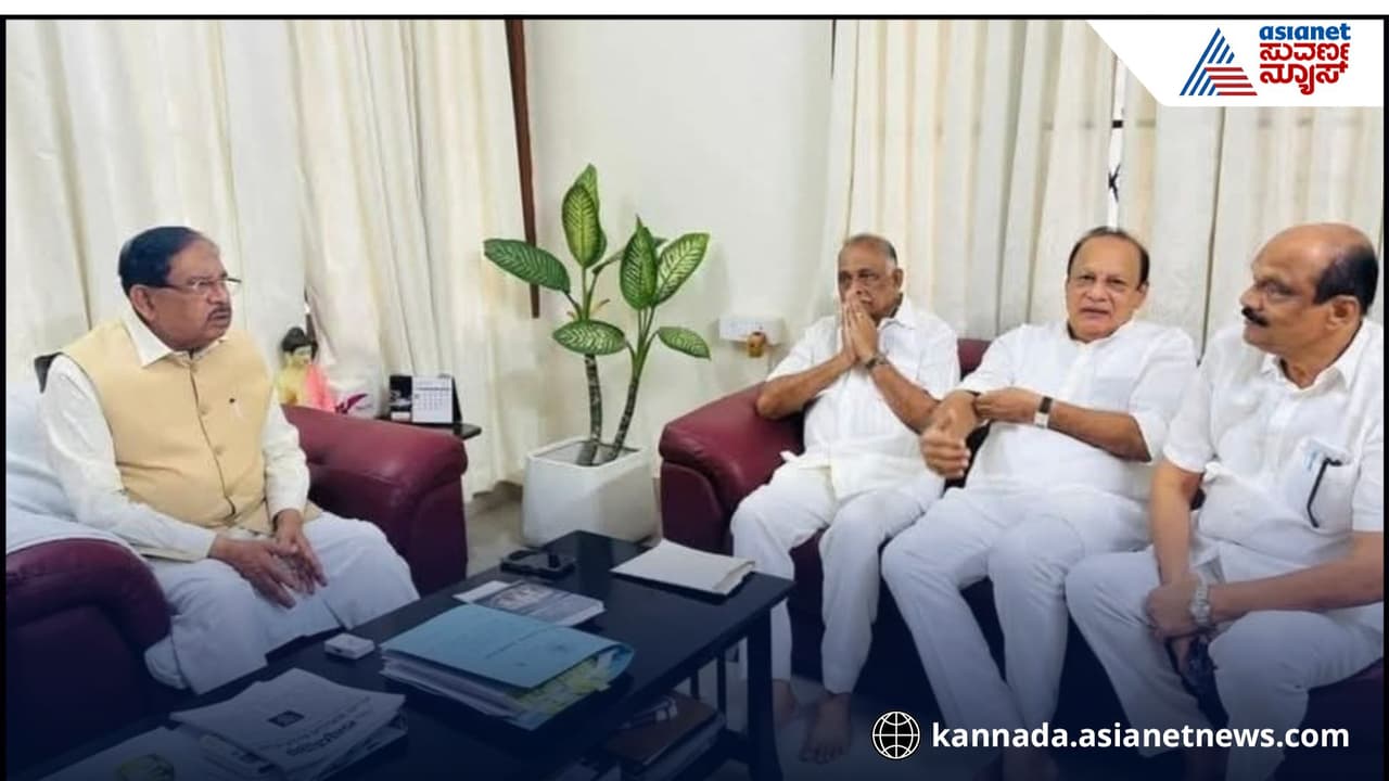 ಬೆಂಗಳೂರು (ಆ.14): ಧರ್ಮಸ್ಥಳದಲ್ಲಿ ನಡೆದಿರುವ ಶವ ಹೂತುಹಾಕಿರುವ ಆರೋಪ ಪ್ರಕರಣ ಇದೀಗ ತೀವ್ರ ಸ್ವರೂಪ ಪಡೆದುಕೊಂಡಿದೆ ಈ ಹಿನ್ನೆಲೆ ಪರಿಸ್ಥಿತಿ ಕೈಮೀರುವ ಮೊದಲೇ ಪ್ರಕರಣ ಸಂಬಂಧ ಗೃಹ ಸಚಿವ ಡಾ. ಜಿ. ಪರಮೇಶ್ವರ್‌ರನ್ನು ದಕ್ಷಿಣ ಕನ್ನಡದ ಕಾಂಗ್ರೆಸ್ ನಾಯಕರಾದ ವಿನಯ್ ಕುಮಾರ್ ಸೊರಕೆ, ಅಭಯ ಚಂದ್ರ ಜೈನ್, ಹರೀಶ್ ಕುಮಾರ್ ಮತ್ತು ರಮಾನಾಥ್ ರೈ ಅವರ ನಿಯೋಗ ಭೇಟಿಯಾಗಿ ಸುದೀರ್ಘ ಚರ್ಚೆ ನಡೆಸಿದೆ.