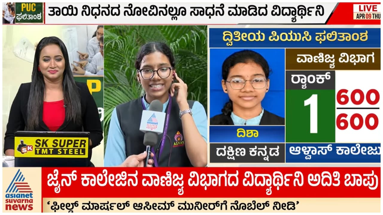 2026ರ ದ್ವಿತೀಯ ಪಿಯುಸಿ ಪರೀಕ್ಷೆಯಲ್ಲಿ, ಆಳ್ವಾಸ್ ಕಾಲೇಜಿನ ವಿದ್ಯಾರ್ಥಿನಿ ದಿಶಾ, ಪರೀಕ್ಷೆಯ ಸಮಯದಲ್ಲಿ ತಾಯಿಯನ್ನು ಕಳೆದುಕೊಂಡ ದುಃಖದ ನಡುವೆಯೂ ವಾಣಿಜ್ಯ ವಿಭಾಗದಲ್ಲಿ 600ಕ್ಕೆ 600 ಅಂಕ ಗಳಿಸಿ ರಾಜ್ಯಕ್ಕೆ ಪ್ರಥಮ ಸ್ಥಾನ ಪಡೆದಿದ್ದಾರೆ. ಅವರ ಈ ಸಾಧನೆ ಮನೋಬಲ ಮತ್ತು ಪರಿಶ್ರಮಕ್ಕೆ ಸಾಕ್ಷಿಯಾಗಿದ್ದು, ಅನೇಕರಿಗೆ ಸ್ಪೂರ್ತಿದಾಯಕವಾಗಿದೆ.