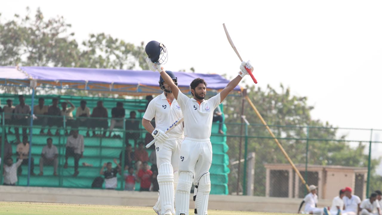 ಶುಭಂ 2 ಸಿಕ್ಸರ್, 12 ಬೌಂಡರಿಗಳೊಂದಿಗೆ 117 (221 ಎಸೆತ) ರನ್ ಕಲೆ ಹಾಕಿದರೆ, ಅಬ್ದುಲ್ ಸಮದ್ 1 ಸಿಕ್ಸ್, 5 ಬೌಂಡರಿ ನೆರವಿನೊಂದಿಗೆ 52 (67) ರನ್ ಗಳಿಸಿ ಕ್ರೀಸ್ ಕಾಯ್ದುಕೊಂಡರು.