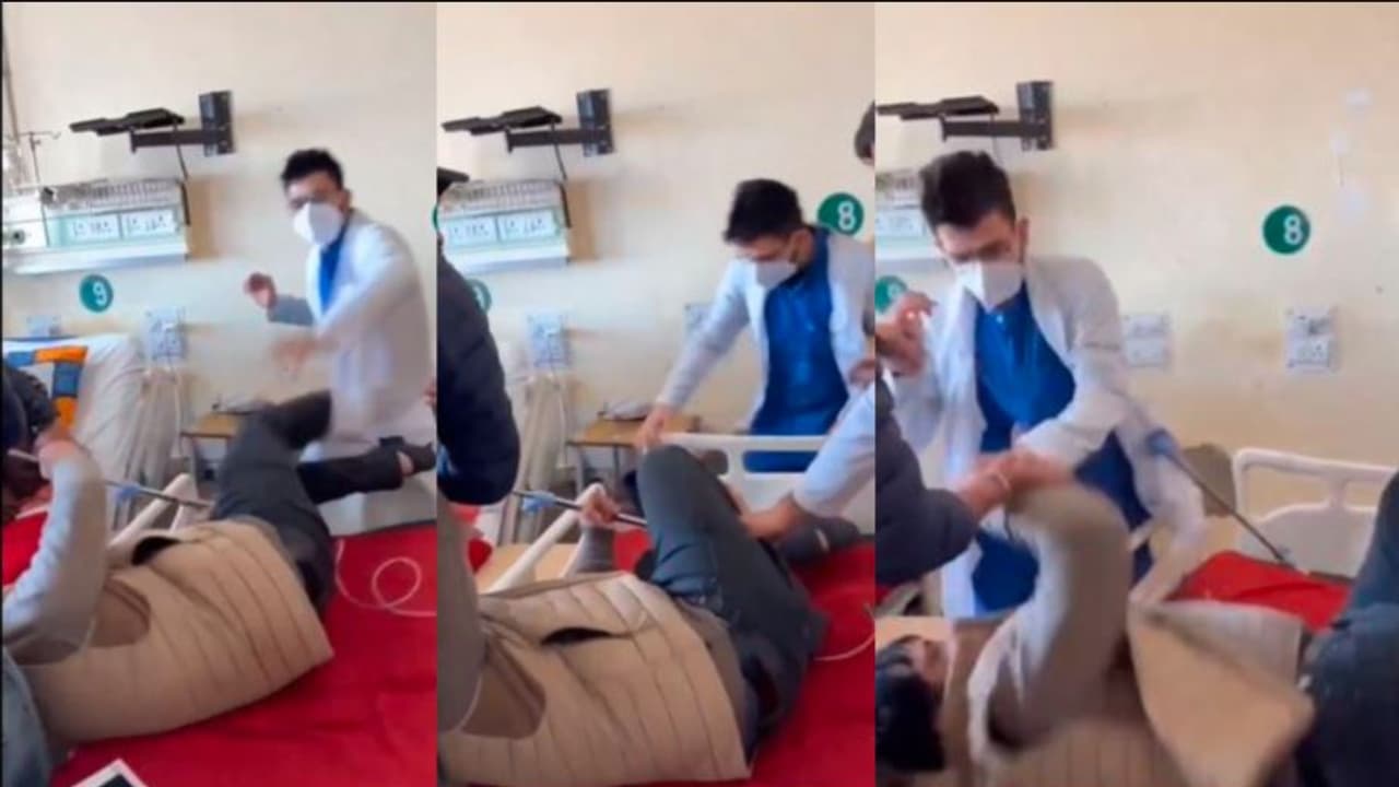 ಆಸ್ಪತ್ರೆಯೊಂದರ ಬೆಡ್ನಲ್ಲಿ ಮಲಗಿದ್ದ ರೋಗಿಯೊಬ್ಬನಿಗೆ ಆಸ್ಪತ್ರೆಯಲ್ಲಿ ಚಿಕಿತ್ಸೆ ನೀಡಬೇಕಾದ ವೈದ್ಯನೋರ್ವ ಹಿಗ್ಗಾಮುಗ್ಗಾ ಥಳಿಸಿದ್ದಾನೆ. ಘಟನೆಯ ವೀಡಿಯೋ ಸಾಮಾಜಿಕ ಜಾಲತಾಣದಲ್ಲಿ ವೈರಲ್ ಆಗಿದ್ದು, ವಿಚಾರ ತಿಳಿದು ಆಸ್ಪತ್ರೆಗೆ ಬಂದ ರೋಗಿಯ ಸಂಬಂಧಿಕರು ಹಾಗೂ ಊರವರು ಆಸ್ಪತ್ರೆಯಲ್ಲಿ ಪ್ರತಿಭಟನೆ ನಡೆಸಿದ್ದಾರೆ. ಹೀಗೆ ರೋಗಿಯ ಮೇಲೆ ಹಲ್ಲೆ ಮಾಡಿದ ವೈದ್ಯನನ್ನು ಕೂಡಲೇ ಸೇವೆಯಿಂದ ವಜಾ ಮಾಡುವಂತೆ ಆಗ್ರಹಿಸಿದ್ದಾರೆ. ಹಿಮಾಚಲ ಪ್ರದೇಶದ ಶಿಮ್ಲಾದ ಇಂದಿರಾ ಗಾಂಧಿ ಮೆಡಿಕಲ್ ಕಾಲೇಜು (ಐಜಿಎಂಸಿ) ಆಸ್ಪತ್ರೆಯಲ್ಲಿ ಈ ಘಟನೆ ನಡೆದಿದ್ದು, ಘಟನೆಯ ವೀಡಿಯೋ ಈಗ ಸಾಮಾಜಿಕ ಜಾಲತಾಣದಲ್ಲಿ ಭಾರಿ ವೈರಲ್ ಆಗಿದ್ದು, ವ್ಯಾಪಕ ಆಕ್ರೋಶಕ್ಕೆ ಕಾರಣವಾಗಿದೆ.