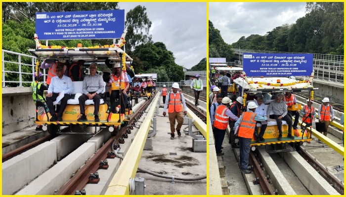 ಬೆಂಗಳೂರಿನ ಆರ್ವಿ ರಸ್ತೆ ಮತ್ತು ಬೊಮ್ಮಸಂದ್ರ ಮಧ್ಯೆ ನಿರ್ಮಾಣವಾಗಿರುವ ಮೆಟ್ರೋ ಹಳದಿ ಮಾರ್ಗದ ಸುರಕ್ಷತಾ ತಪಾಸಣೆ ನಡೆಯುತ್ತಿದ್ದು, ಆಗಸ್ಟ್ 15 ರೊಳಗೆ ವಾಣಿಜ್ಯ ಚಾಲನೆ ಆರಂಭವಾಗುವ ಸಾಧ್ಯತೆ ಇದೆ. ರೈಲ್ವೆ ಸುರಕ್ಷತಾ ಆಯುಕ್ತರು ಮಾರ್ಗದ ಸುರಕ್ಷತೆಯನ್ನು ಪರಿಶೀಲಿಸುತ್ತಿದ್ದಾರೆ.