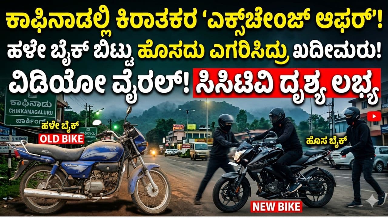 ಚಿಕ್ಕಮಗಳೂರಿನಲ್ಲಿ, ಕಳ್ಳರು ವ್ಯಕ್ತಿಯೊಬ್ಬರ ಹೊಸ ಬೈಕನ್ನು ಕದ್ದು, ಬದಲಿಗೆ ತಮ್ಮ ಹಳೆಯ ಬೈಕನ್ನು ಸ್ಥಳದಲ್ಲಿಯೇ ಬಿಟ್ಟು ಹೋಗಿದ್ದಾರೆ. ಈ ವಿಚಿತ್ರ ‘ಎಕ್ಸ್ಚೇಂಜ್ ಆಫರ್’ ಕಳ್ಳತನದ ದೃಶ್ಯ ಸಿಸಿಟಿವಿಯಲ್ಲಿ ಸೆರೆಯಾಗಿದ್ದು, ಬಸವನಹಳ್ಳಿ ಪೊಲೀಸರು ತನಿಖೆ ನಡೆಸುತ್ತಿದ್ದಾರೆ.