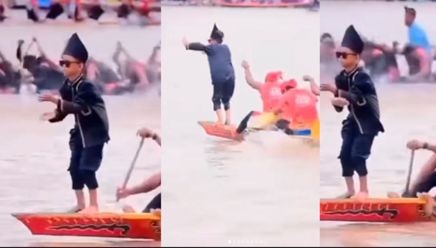 ಇಂಡೋನೇಷ್ಯಾದ ರಯ್ಯನ್ ಅರ್ಕನ್ ಧಿಕಾ ಎಂಬ ಬಾಲಕ ದೋಣಿ ಸ್ಪರ್ಧೆಯ ವೇಳೆ ಬೋಟ್ನ ತುದಿಯಲ್ಲಿ ಮಾಡಿದ ಬ್ಯಾಲೆನ್ಸ್ ಡಾನ್ಸ್ ವೀಡಿಯೋ ಈಗ ವೈರಲ್ ಆಗಿದೆ