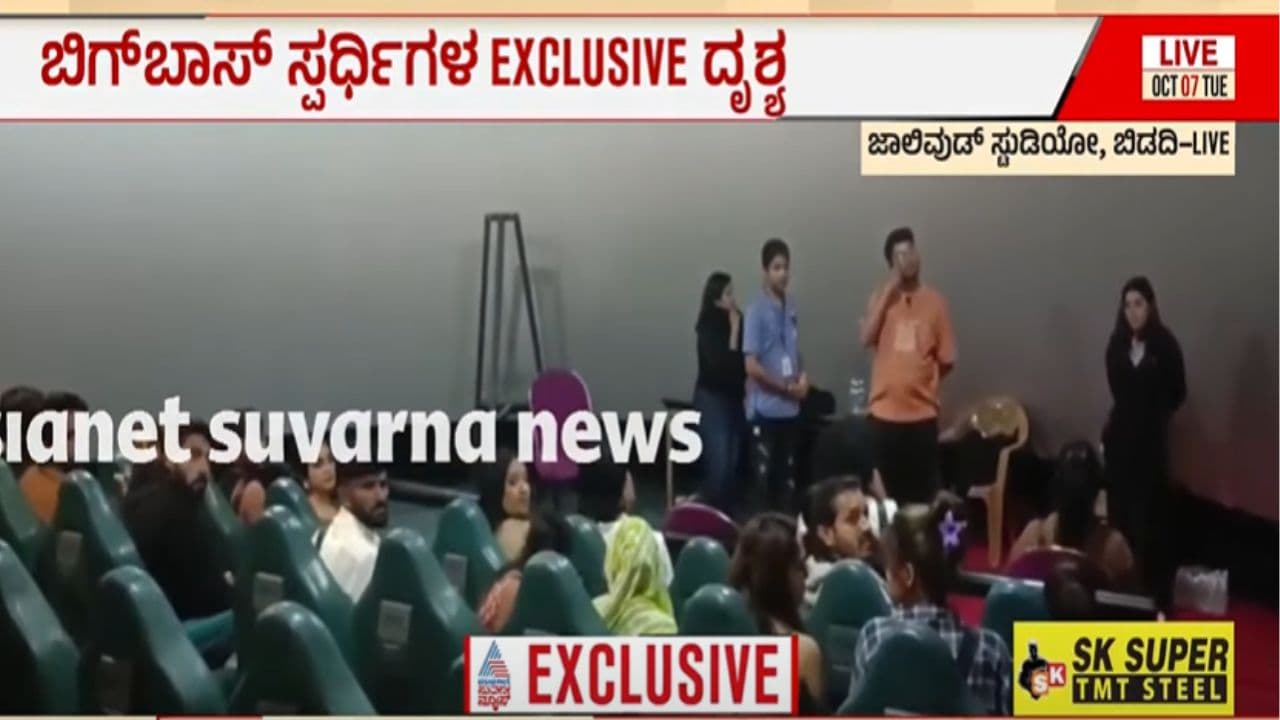 ಬಿಗ್ ಬಾಸ್ ಮನೆಯೊಳಗೆ ನಡೆಯುತ್ತಿರುವ ಹೈಡ್ರಾಮಾವನ್ನು ಸುವರ್ಣ ನ್ಯೂಸ್ನಲ್ಲಿ ಎಕ್ಸ್ಕ್ಲ್ಯೂಸಿವ್ ಆಗಿ ಸರೆಹಿಡಿಯಲಾಗಿದೆ. ಎಲ್ಲ ಸ್ಪರ್ಧಿಗಳನ್ನು ಕೂಡಲೇ ಮನೆಯಿಮದ ಹೊರಗೆ ಕಳುಹಿಸಿ, ಲೈಟ್ಸ್ ಆಫ್ ಮಾಡಲಾಗುತ್ತು. ಎಲ್ಲ 3 ಗೇಟುಗಳನ್ನು ರಾಮನಗರದ ತತಹಶೀಲ್ದಾರ್ ನೇತೃತ್ವದಲ್ಲಿ ಕ್ಲೋಸ್ ಮಾಡಲಾಗಿದೆ. ಇನ್ನು ಒಂದು ಗೇಟ್ ಮಾತ್ರ ಬಾಕಿಯಿದೆ. ಈಗ ಎಲ್ಲ 17 ಸ್ಪರ್ಧಿಗಳು ಇದೀಗ ಕಿಚ್ಚ ಸುದೀಪ್ ವಾರಾಂತ್ಯದ ಕಾರ್ಯಕ್ರಮವನ್ನ ನಡೆಸಿಕೊಡುವ ಜಾಲಿವುಡ್ ಥಿಯೇಟರ್ ಆವರಣಕ್ಕೆ ಕರೆತಂದು ಕೂರಿಸಲಾಗಿದೆ.