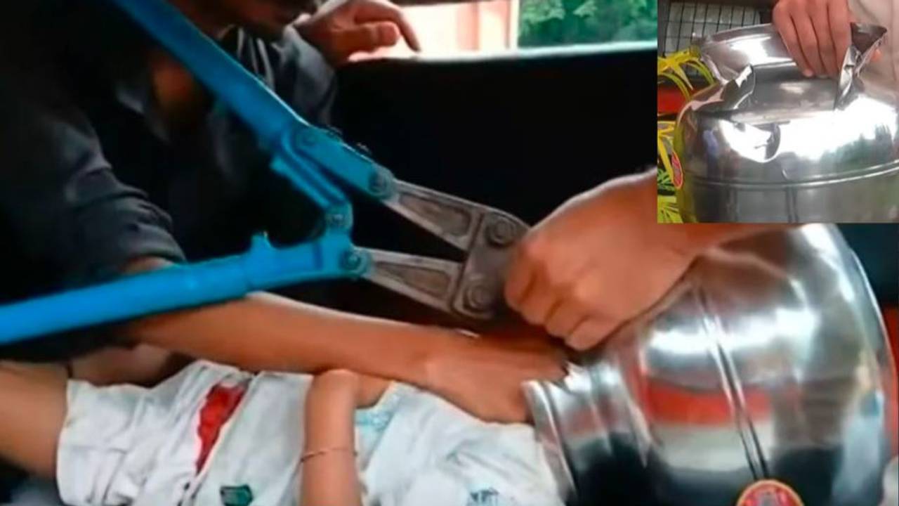 ಅದೇ ರೀತಿ ಇಲ್ಲೊಂದು ಕಡೆ ಪುಟ್ಟ ಮಗುವೊಂದು ಅಪ್ಪ ಆಗಷ್ಟೇ ಅಂಗಡಿಯಿಂದ ತಂದ ಹೊಸದಾದ ಚೊಂಬಿನಲ್ಲಿ ಆಟವಾಡುತ್ತಾ ಚೊಂಬನ್ನು ತಲೆಗೆ ಹಾಕಿಕೊಂಡಿದೆ. ಆದರೆ ನಂತರ ವಾಪಸ್ ತೆಗೆಯುವುದಕ್ಕೆ ಮಾತ್ರ ಆಗಿಲ್ಲ. ಮಗುವಿನ ತಲೆಯನ್ನು ಚೊಂಬಿನಿಂದ ಹೊರಗೆ ತೆಗೆಯಲು ಹಲವು ಪ್ರಯತ್ನ ಮಾಡಿದ ಪೋಷಕರು ಸಾಧ್ಯವಾಗದೇ ಹೋದಾಗ ಬಳಿಕ ಮಗುವನ್ನು ಅಗ್ನಿ ಶಾಮಕ ಸಿಬ್ಬಂದಿ ಬಳಿ ಕರೆದೊಯ್ದಿದ್ದಾರೆ.