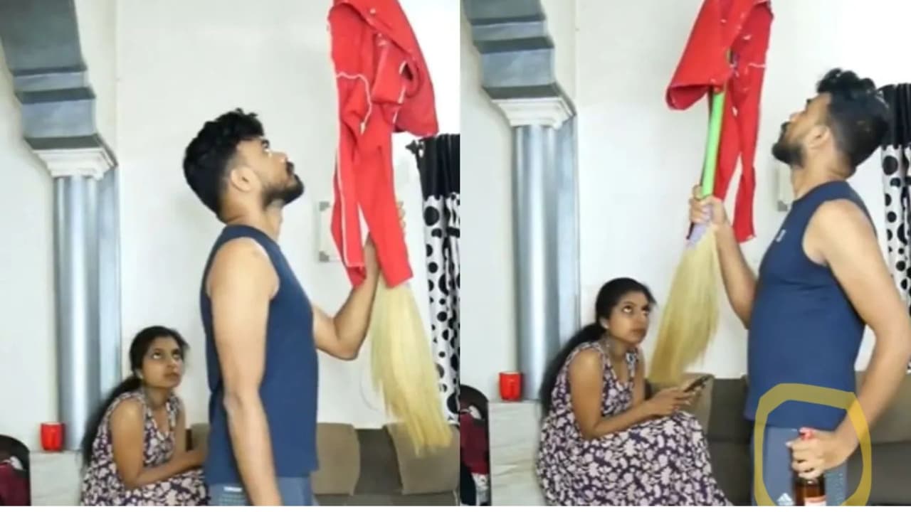 Funny reels: ಮಹಿಳೆ ಸೋಫಾದ ಅಂಚಿನಲ್ಲಿ ಕುಳಿತು ಫೋನ್ನಲ್ಲಿ ಏನೋ ನೋಡ್ತಿದ್ದಾಳೆ. ನಂತರ ಇದಕ್ಕಿದ್ದಂತೆ ಬರುವ ಆಕೆಯ ಗಂಡ ಪೊರಕೆಯಲ್ಲಿ ಬಟ್ಟೆಯನ್ನು ನೇತುಹಾಕಿಕೊಂಡು ಮೇಲಕ್ಕೆ ನೋಡುತ್ತಾ ಹೋಗುವುದನ್ನು ನೋಡುತ್ತಾಳೆ. ಹೆಂಡತಿಗೆ ಗಂಡನ ವರ್ತನೆ ನೋಡಿ ಆಶ್ಚರ್ಯವಾಗುತ್ತೆ.