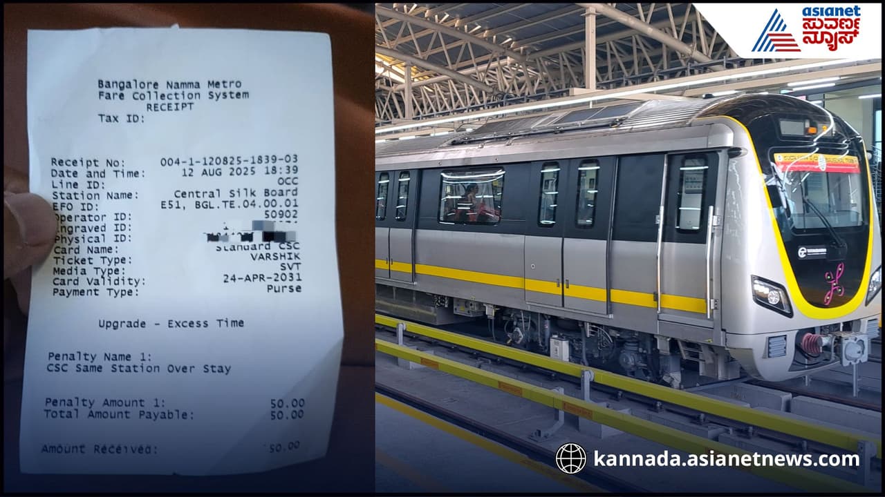 ಸಿಲ್ಕ್ ಬೋರ್ಡ್ ಸ್ಟೇಷನ್ನಿಂದ ಆರ್ವಿ ರಸ್ತೆಗೆ ತೆರಳಲು ಟಿಕೆಟ್ ಪಡೆದು ಒಳಗೆ ಪ್ರವೇಶಿಸಿದ ಪ್ರಯಾಣಿಕನೊಬ್ಬ ರೈಲು ತಪ್ಪಿದ ಕಾರಣಕ್ಕೆ 25 ನಿಮಿಷ ಕಾಯಬೇಕಾದ ಪರಿಸ್ಥಿತಿ ಬಂದಿದೆ. ಆದರೆ ಮೆಟ್ರೋದಲ್ಲಿ 20 ನಿಮಿಷಕ್ಕಿಂತ ಹೆಚ್ಚು ಸಮಯ ಸ್ಟೇಷನ್ನಲ್ಲಿ ಕಳೆದಿದ್ದಕ್ಕೆ 50 ರೂ. ದಂಡ ಹಾಕಲಾಗಿದೆ.