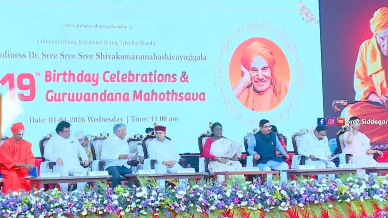 ತುಮಕೂರು (ಏ.1): ತುಮಕೂರಿನ ಸಿದ್ದಗಂಗಾ ಮಠದಲ್ಲಿ ಇಂದು (ಏ.1) ಆಯೋಜಿಸಲಾಗಿರುವ ಡಾ.ಶಿವಕುಮಾರ ಮಹಾಸ್ವಾಮಿಗಳ 119ನೇ ಜಯಂತೋತ್ಸವ ಹಾಗೂ ಗುರುವಂದನಾ ಕಾರ್ಯಕ್ರಮದಲ್ಲಿ ಆಸನ ವ್ಯವಸ್ಥೆಯ ಶಿಷ್ಟಾಚಾರ (Protocol) ದೊಡ್ಡ ಮಟ್ಟದ ಗೊಂದಲಕ್ಕೆ ಕಾರಣವಾಯಿತು. ರಾಷ್ಟ್ರಪತಿಗಳ ಭದ್ರತಾ ಸಿಬ್ಬಂದಿ ಹಾಗೂ ಕೇಂದ್ರ ಸಚಿವರ ನಡುವೆ ಆಸನದ ವಿಚಾರವಾಗಿ ಗೊಂದಲ ಉಂಟುಮಾಡಿತು.