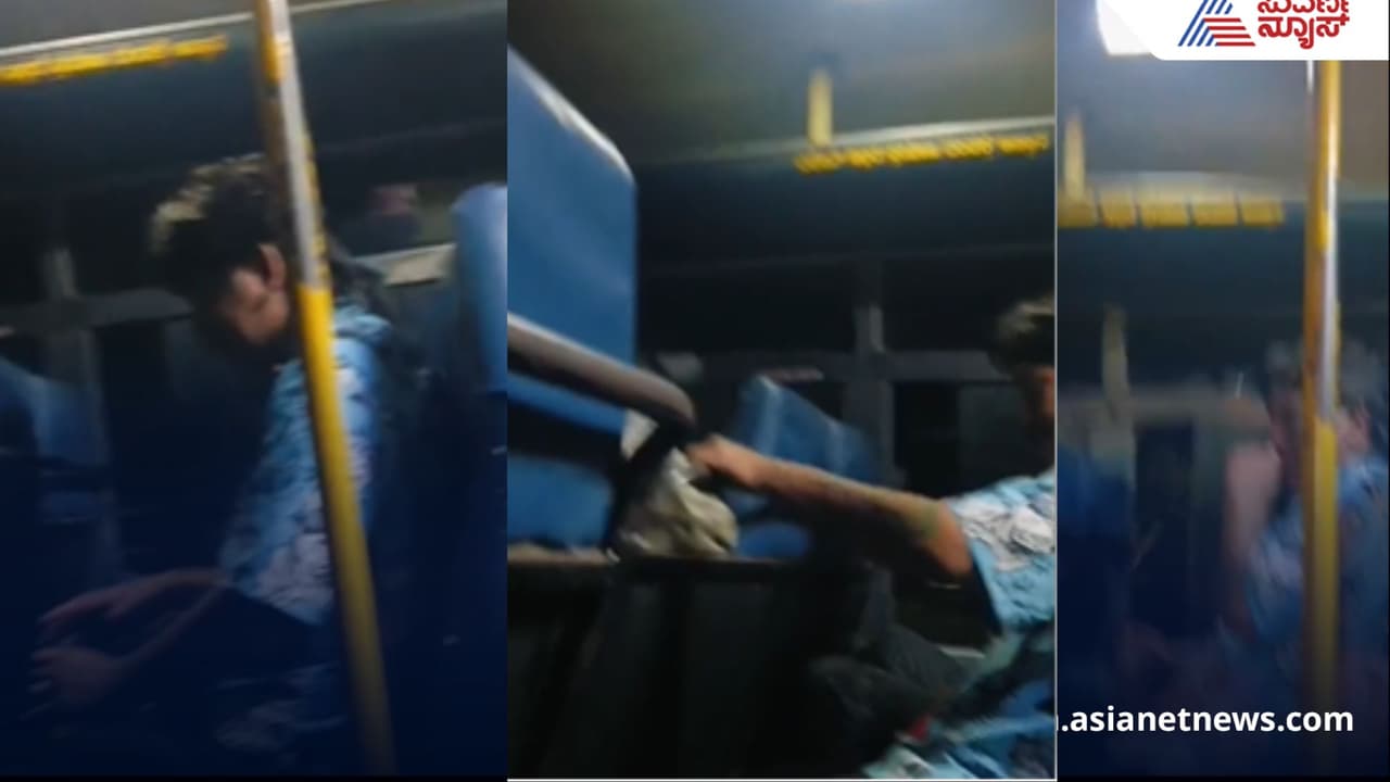ಚಲಿಸುತ್ತಿದ್ದ ಬಸ್ಸಿನಲ್ಲಿ ‘ಎಣ್ಣೆ ಪಾರ್ಟಿ’!