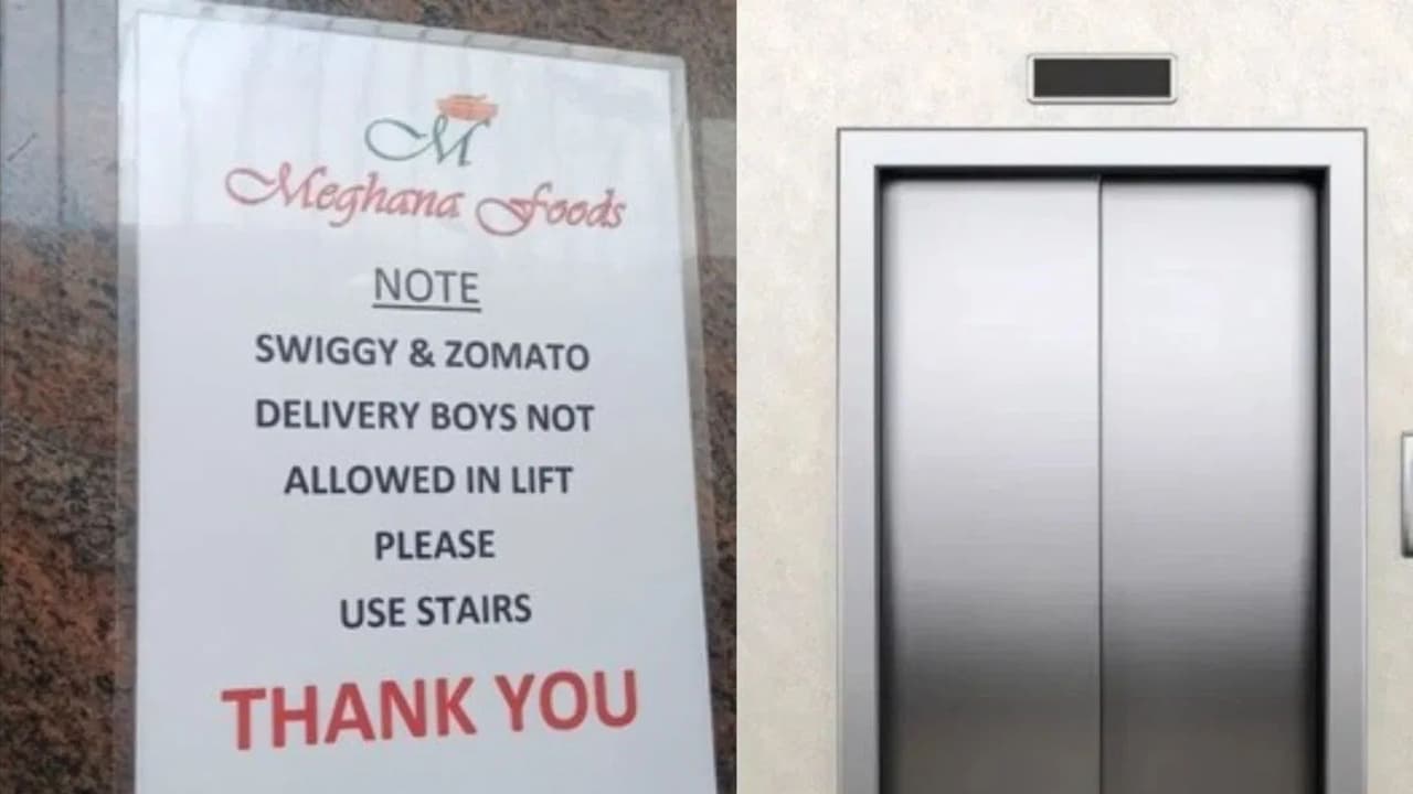“ಸ್ವಿಗ್ಗಿ, ಝೊಮ್ಯಾಟೊ ಡೆಲಿವರಿ ಬಾಯ್ಸ್ ನಮ್ಮ ರೆಸ್ಟೋರೆಂಟ್ ಲಿಫ್ಟ್ ಬಳಸಬಾರದು, ದಯವಿಟ್ಟು ಮೆಟ್ಟಿಲುಗಳನ್ನು ಬಳಸಿ” ಎಂದು ತಮ್ಮ ಹೋಟೆಲ್ ಲಿಫ್ಟ್ ಬಳಿ ಪೋಸ್ಟರ್ ಅಂಟಿಸಿ ವ್ಯಾಪಕ ಟೀಕೆಗೆ ಗುರಿಯಾಗಿದ್ದ ಪ್ರಖ್ಯಾತ ಮೇಘನಾ ಫುಡ್ಸ್ ಸದ್ಯ ಡೆಲಿವರಿ ಏಜೆಂಟ್ಗಳ ಬಳಿ ಕ್ಷಮೆಯಾಚಿಸಿದೆ.